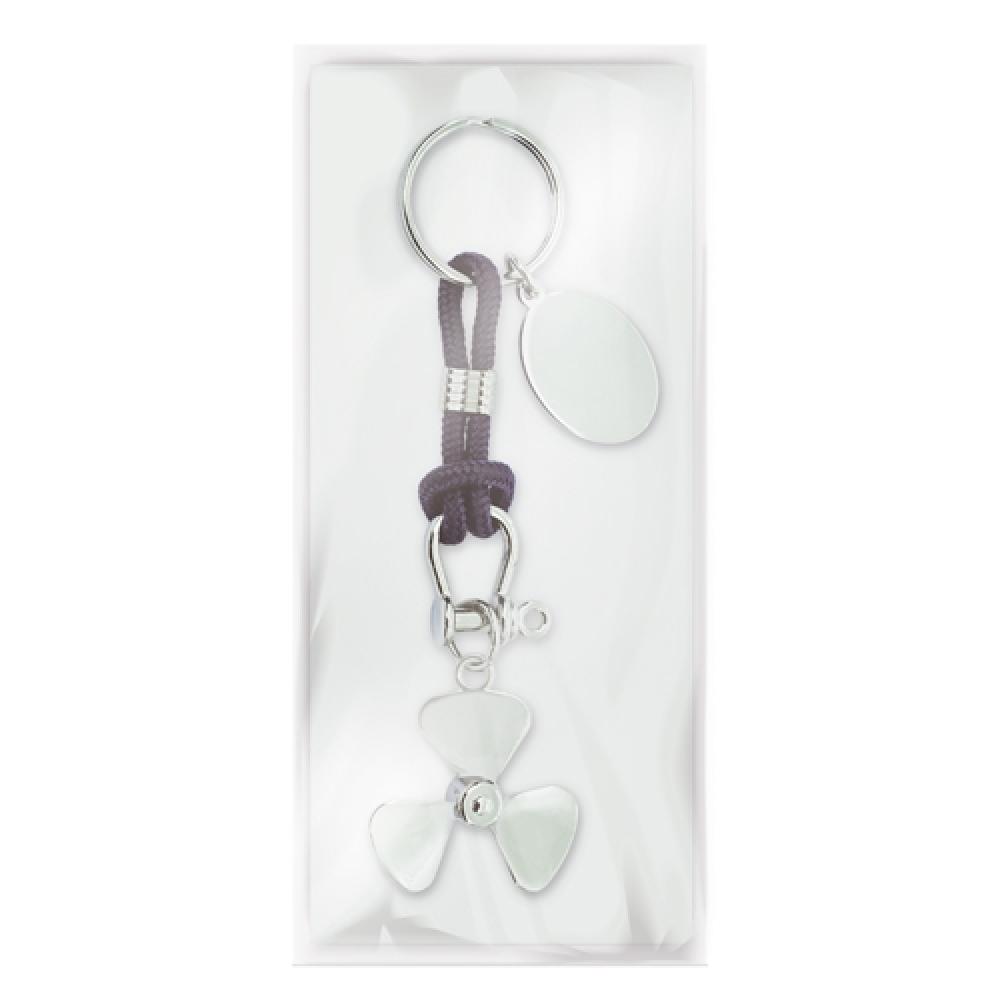 Брелок с морским винтом, соединенный синим веревкой. Включает пластину для лазерной печати.