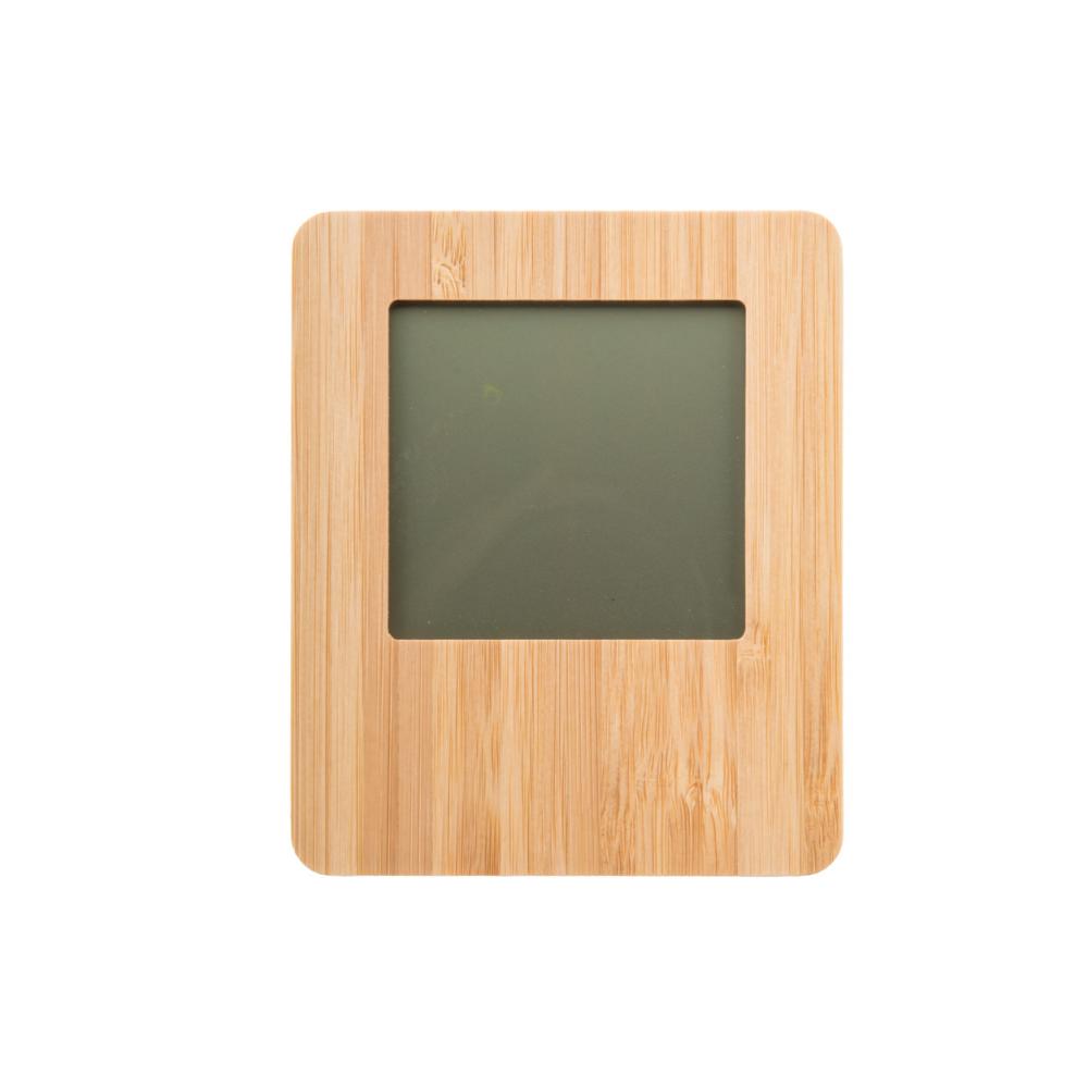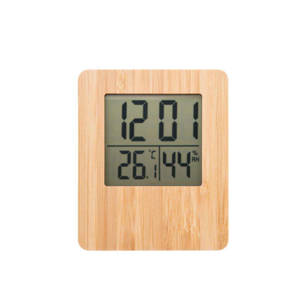Метеостанция и цифровые часы с передней панелью из бамбука. Функции: будильник, календарь, термометр и дисплей влажности. Работает от 2-х батареек AAA, батарейки не включены.