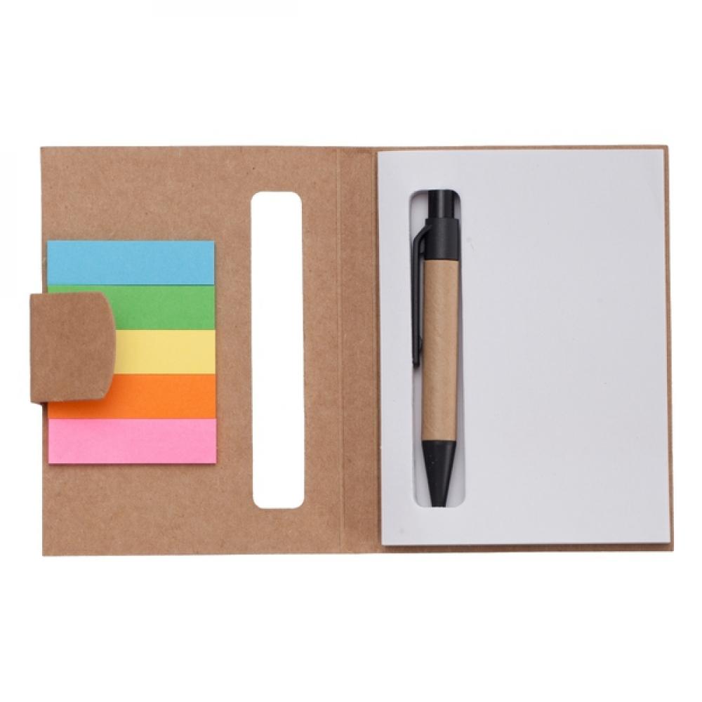 Мини-блокнот с эко-мини-ручкой (87х10х12 мм) с пластиковыми элементами. Обложка: крафт-бумага 500 г. Внутри: 80 г бездревесной бумаги на 100 листов (78х107 мм). Клейкие листы 80 г бумаги (12x45 мм) 25 листов каждый блокнот. Возможна полноцветная печать (УФ) и XL.