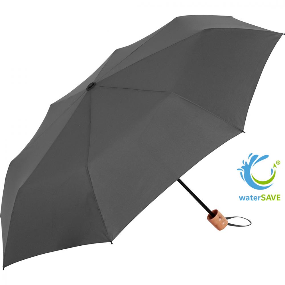 Легко управляется благодаря безопасному механизму, высококачественная ветрозащитная система обеспечивает максимальную гибкость каркаса в штормовых условиях, материал покрытия из полиэстера понже из переработанных пластиков, с этикеткой waterSAVE® на застежке (в новых поставках), деревянная ручка с возможностью нанесения рекламной надписи.