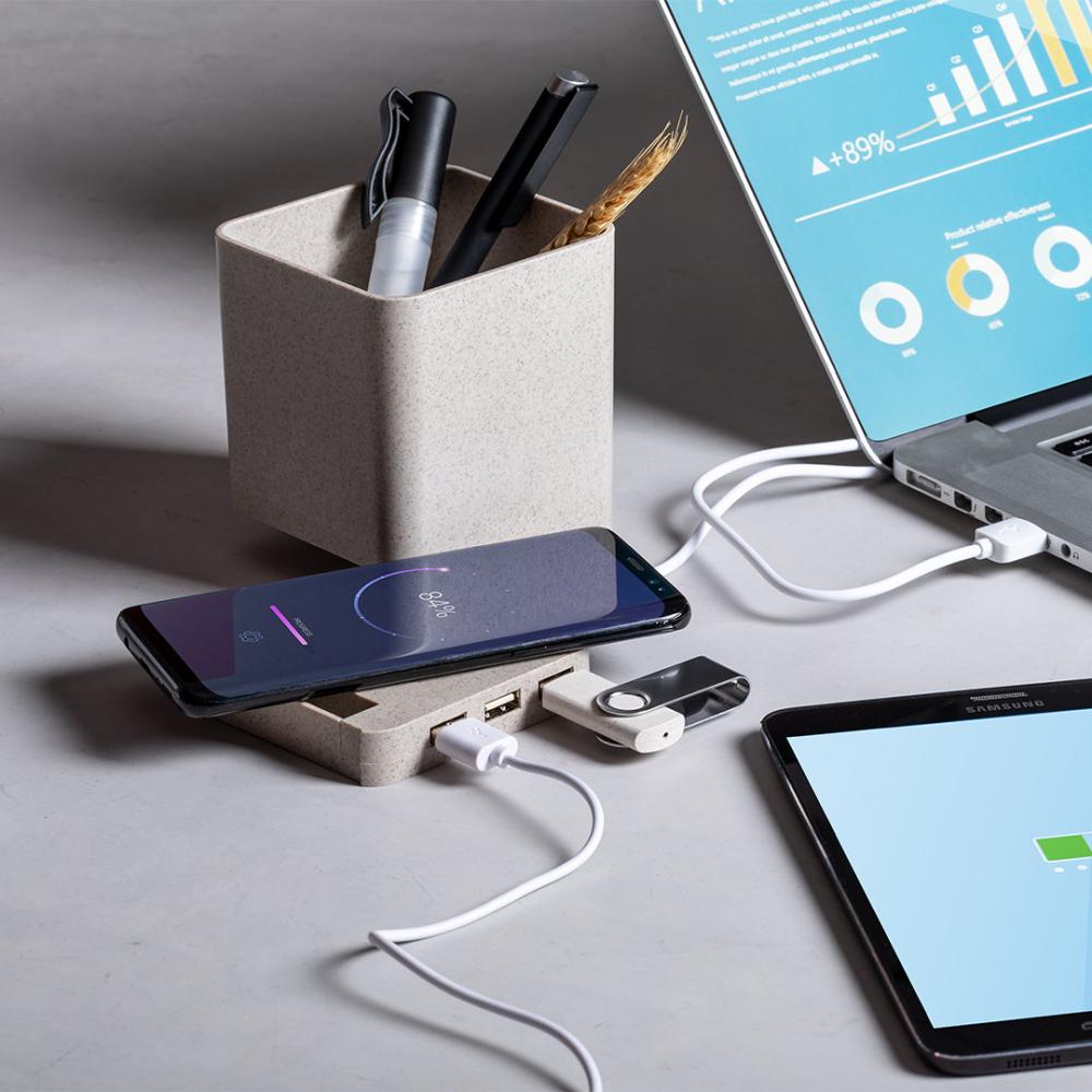 Особенности многофункциональный держатель для ручек nature line 4 в 1. Изготовлено из пшеничной соломы, чтобы стимулировать использование натурального сырья и сократить выбросы загрязняющих веществ. С функциями держателя ручки, смартфона, беспроводного зарядного устройства и USB-порта (3xUSB 2.0). Совместим со смартфонами, оснащенными технологией беспроводной зарядки. Включая кабель micro USB белого цвета длиной 1 метр. Представлен в привлекательной коробке с эко-дизайном. Руководство по эксплуатации доступно на испанском и английском языках. Беспроводная связь 5 Вт. 3 Ступицы. USB 2.0 Пшеничная солома/ АБС