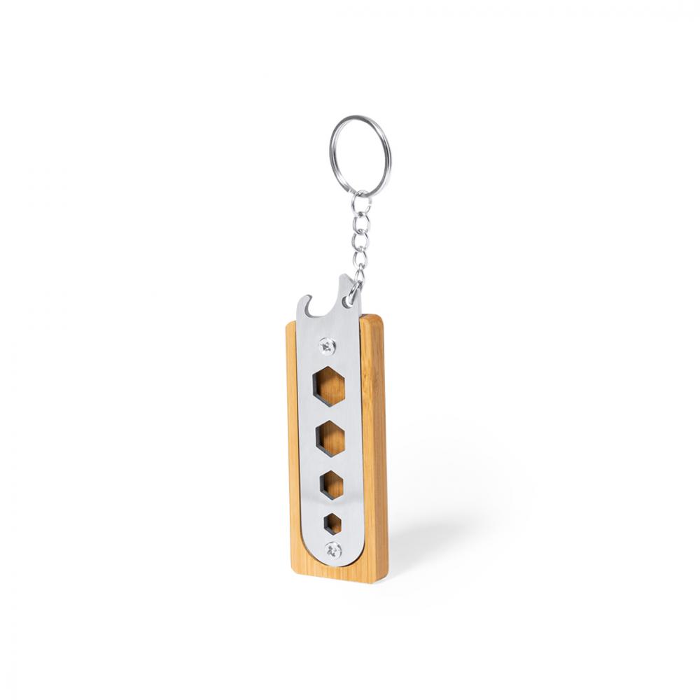 Многофункциональный брелок, изготовленный из прочной нержавеющей стали и бамбука. С практичным набором из 4 шестигранных гаечных ключей и открывалкой для бутылок. Представлен в индивидуальной коробке из крафт-дизайна.