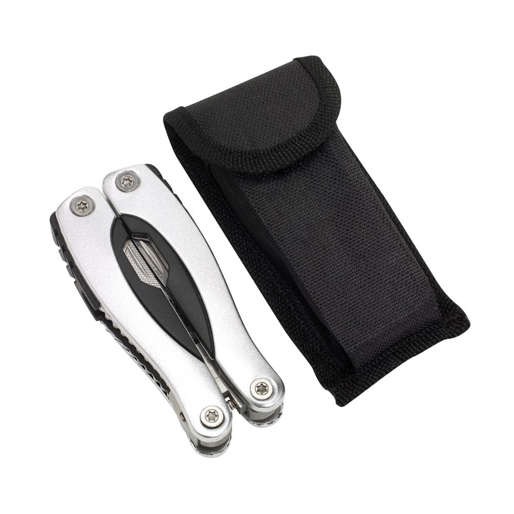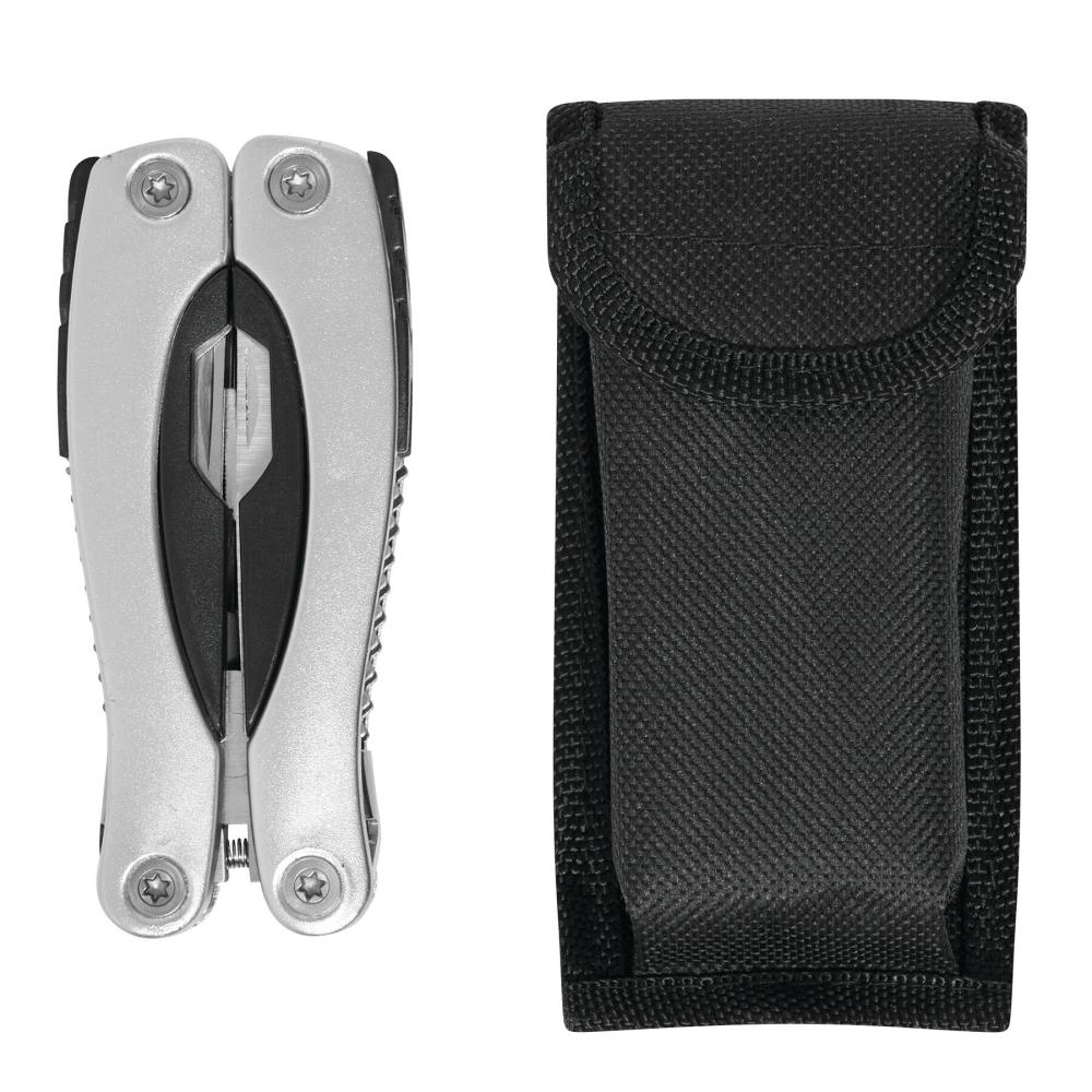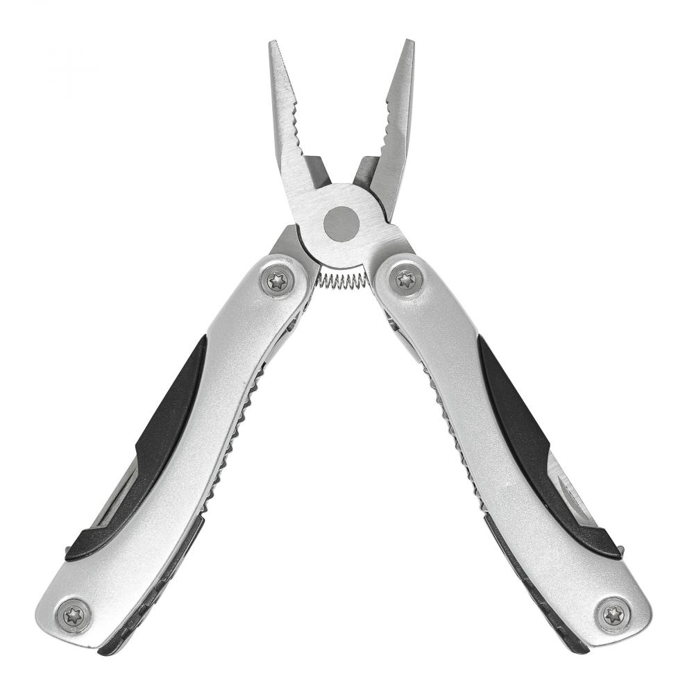 Многофункциональный инструмент БОЛЬШИЕ ПЛОСКОГУБЦЫ: со складными универсальными плоскогубцами, рукоятки, покрытые алюминием, со встроенными инструментами из нержавеющей стали: пила, напильник, рыбный нож + мера (дюйм), открывалка для консервных банок и открывалка для бутылок, лезвие ножа, крестовая отвертка, малая и большая отвертка, дюйм нейлоновый чехол с застежкой-липучкой и петлей для ремня на задней стороне