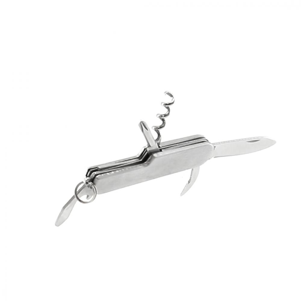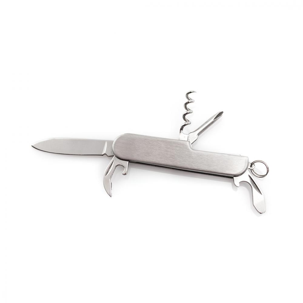 Особенности Универсальный нож из нержавеющей стали с 6 функциями. В комплект входит нож, открывалка, отвертка и брелок для ключей. Представлен в индивидуальной коробке. 6 Функций Алюминий/ Нержавеющая сталь