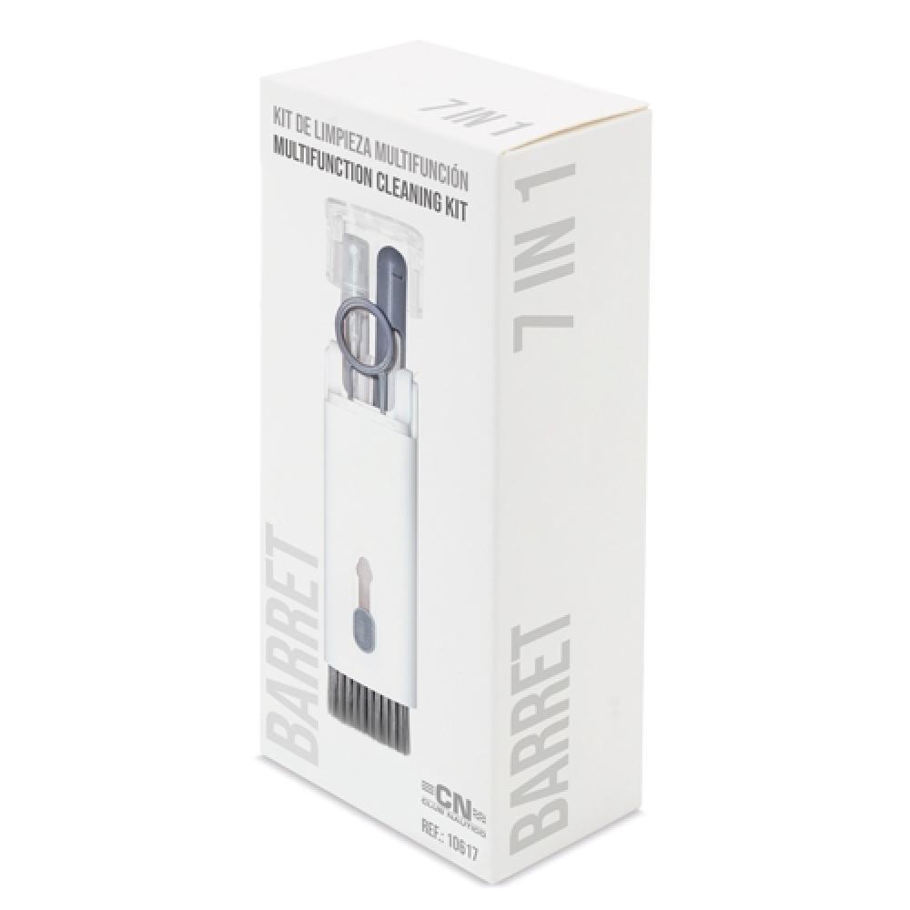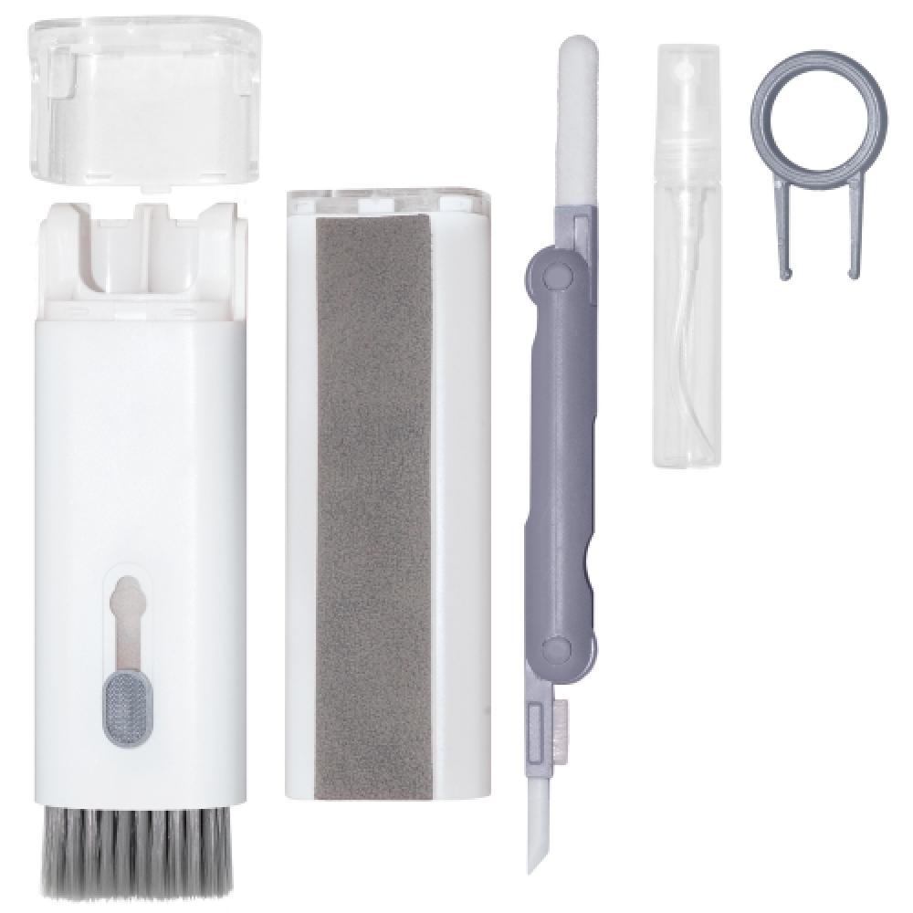 Многофункциональный набор для чистки 7 в 1, в который входят: Щетка для чистки Мягкая ткань Силиконовый наконечник Мини-щетка Губчатая щетка с ворсом Крючок для извлечения ключей Распылитель Каждая деталь в отдельной коробке размером 6x14x3,5 см