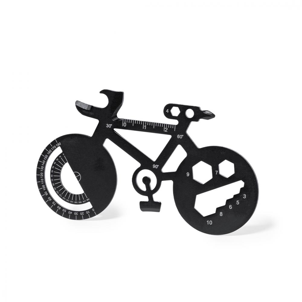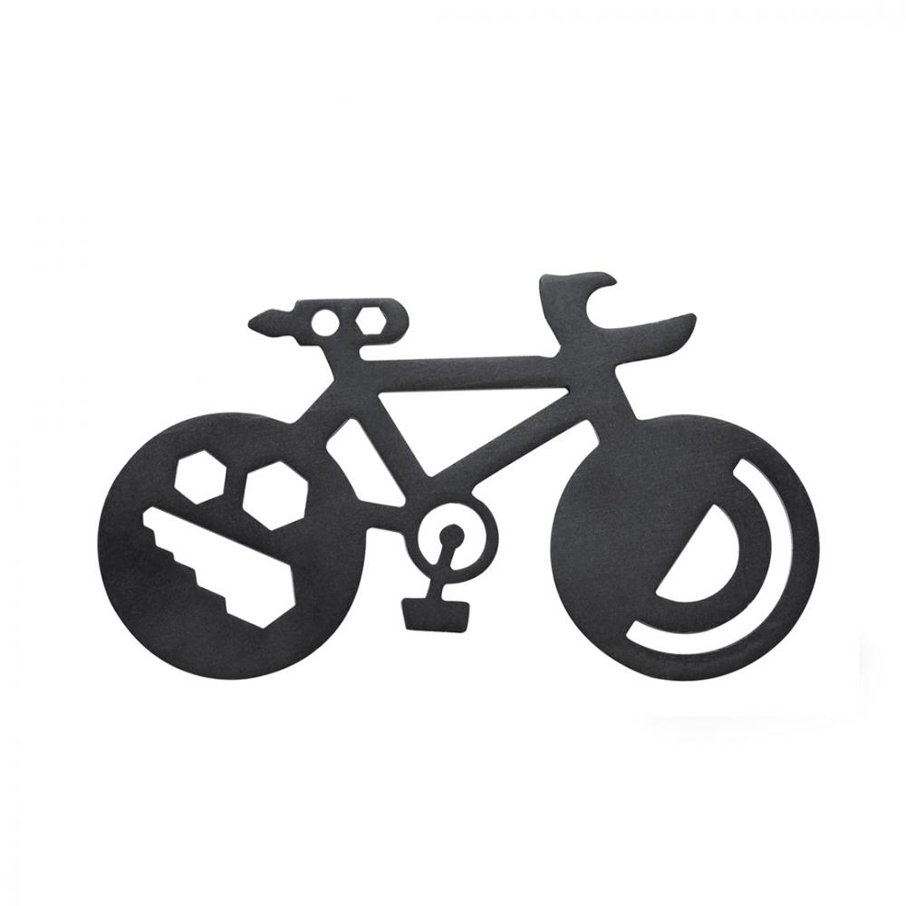 Характеристики Удобный и полезный мультитул из нержавеющей стали в форме велосипеда. С 16 функциями, включая плоскую и крестообразную отвертки, гаечный ключ для гаек шестигранной формы разных размеров, линейку, угловой транспортир и открывалку для бутылок. Поставляется в перерабатываемом бумажном пакете. 16 функций Нержавеющая сталь