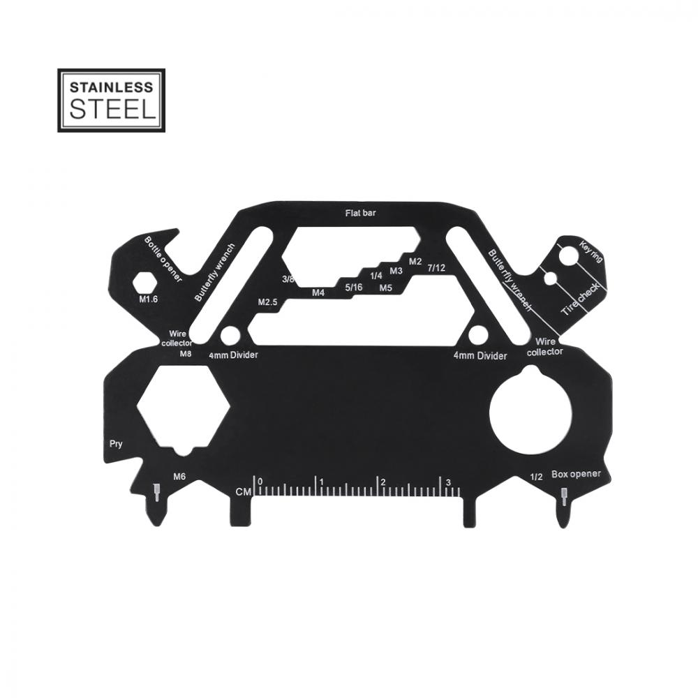 Оригинальный и практичный многофункциональный инструмент из нержавеющей стали в форме автомобиля. С 30 функциями, включая плоскую отвертку и отвертку Philips, гаечный ключ для шестигранных гаек различных размеров, линейку и открывалку для бутылок.