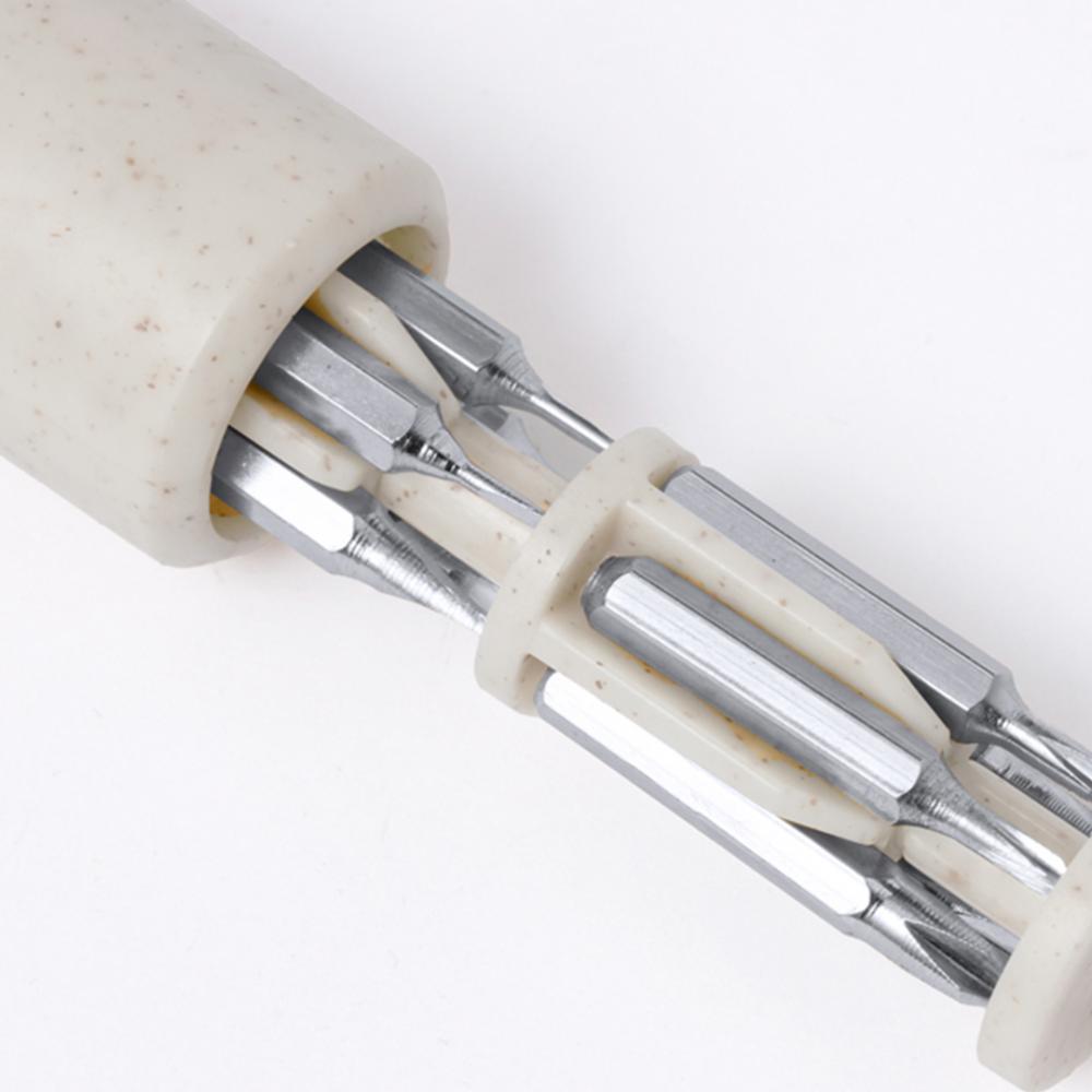 Характеристики Практичный многофункциональный инструмент из пшеничной соломы в форме отвертки. Включает отделение внутри рукоятки для хранения нескольких магнитных насадок (плоских и крестообразных). С логотипом из пшеничной соломы и представлен в коробке дизайна крафт. Пшеничная солома способствует использованию натуральных сырьевых материалов, тем самым снижая выбросы загрязняющих веществ. 10 аксессуаров Пшеничная солома/ABS