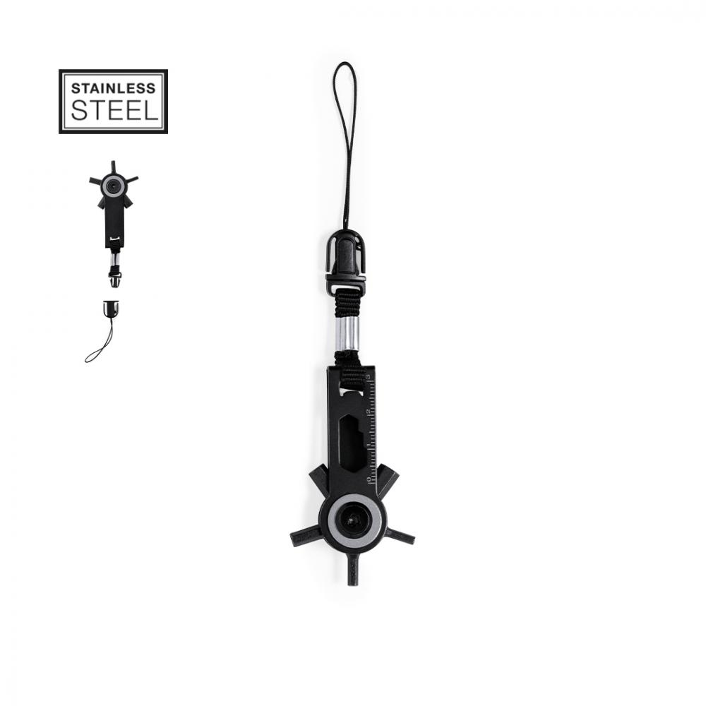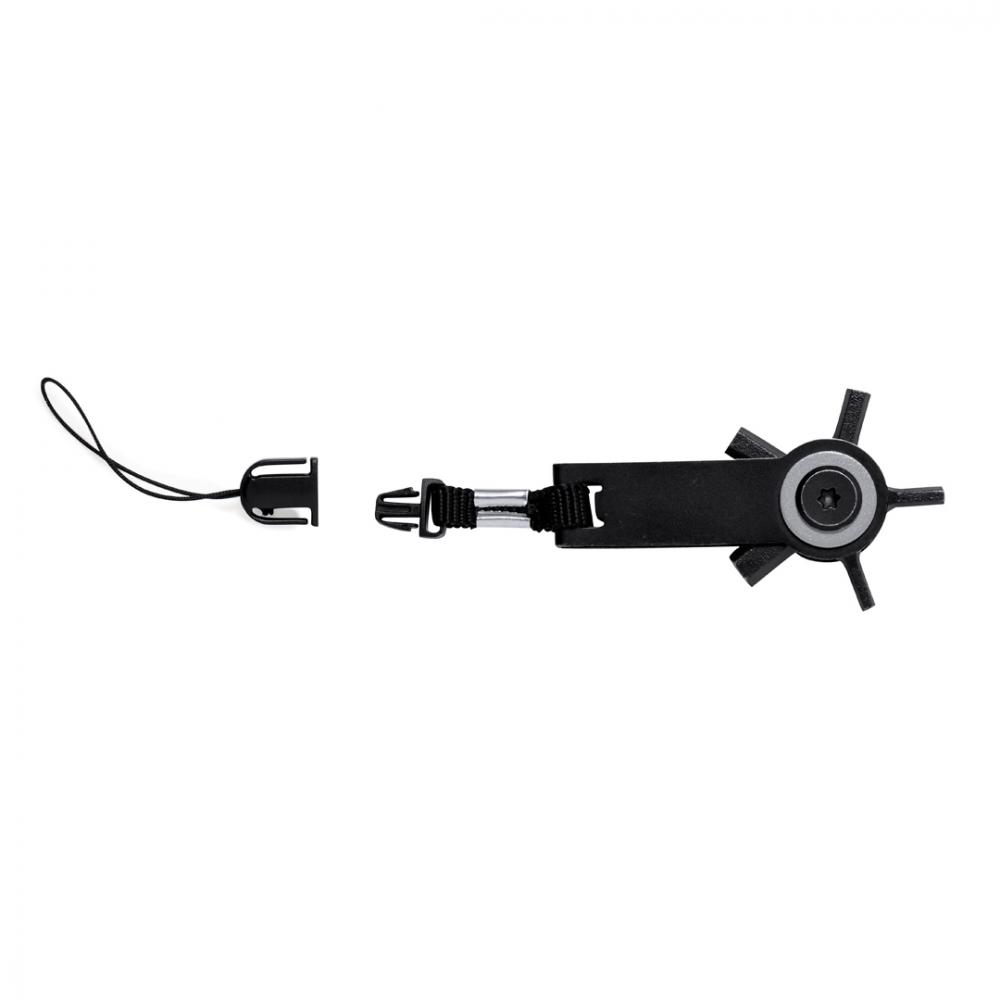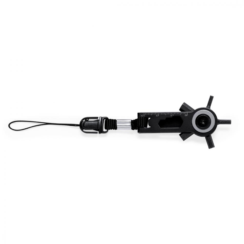 Характеристики Эффективный мультитул с поворотной головкой из нержавеющей стали с черным покрытием. С 10 функциями: ключи аллен, шестигранные ключи различных размеров, линейка и практичный аксессуар для ношения с застежкой-пряжкой. Поставляется в перерабатываемом крафт-пакете. 10 функций Нержавеющая сталь