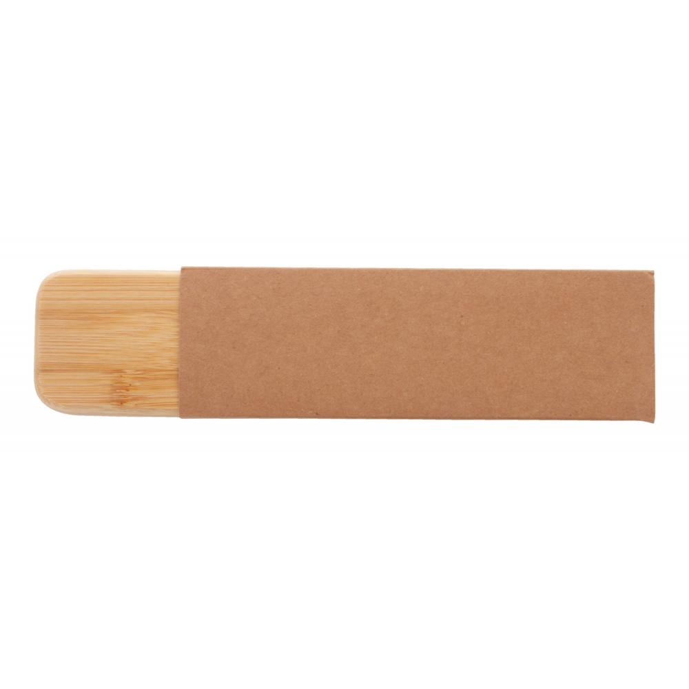 Элегантный набор ручек из бамбука и металла с шариковой ручкой и роликовой ручкой в бамбуковой подарочной коробке. С голубой заправкой.