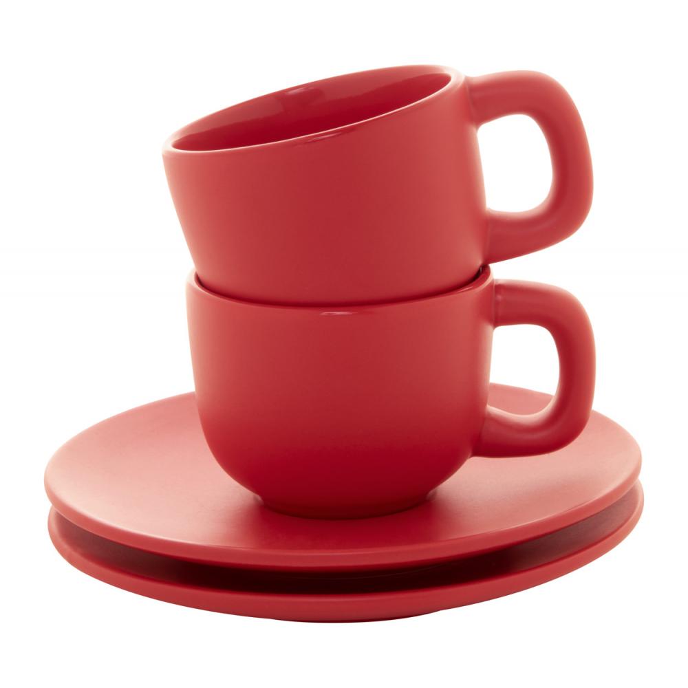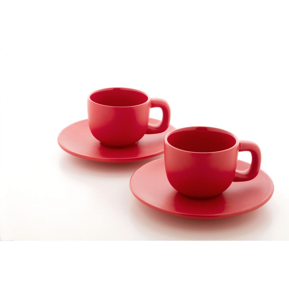 Набор из двух чашек и блюдец для эспрессо из керамики высокого качества. С матовой внешней и глянцевой внутренней отделкой. Объем 85 мл. В крафтовой картонной коробке.