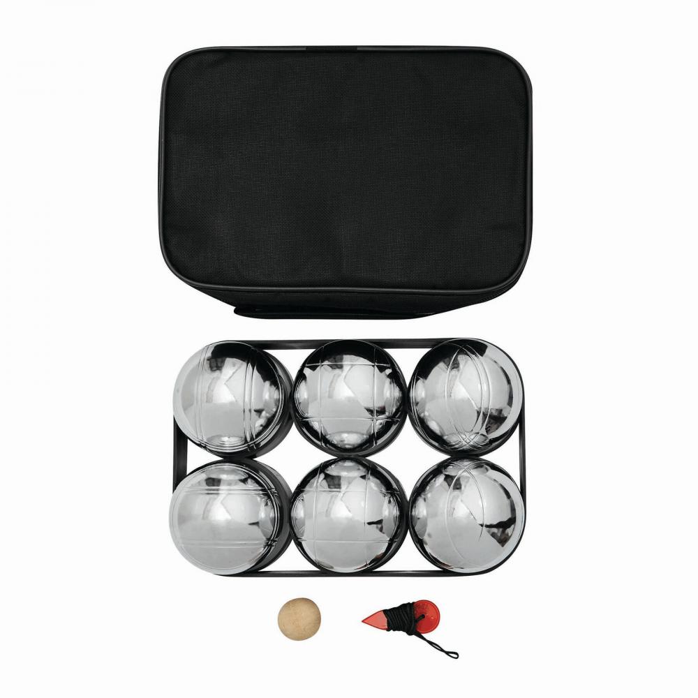 Набор булей GOLIATH: состоит из 6 металлических шариков, деревянного шарика и красной измерительной нити, упакованных в черный нейлоновый пакет на молнии.