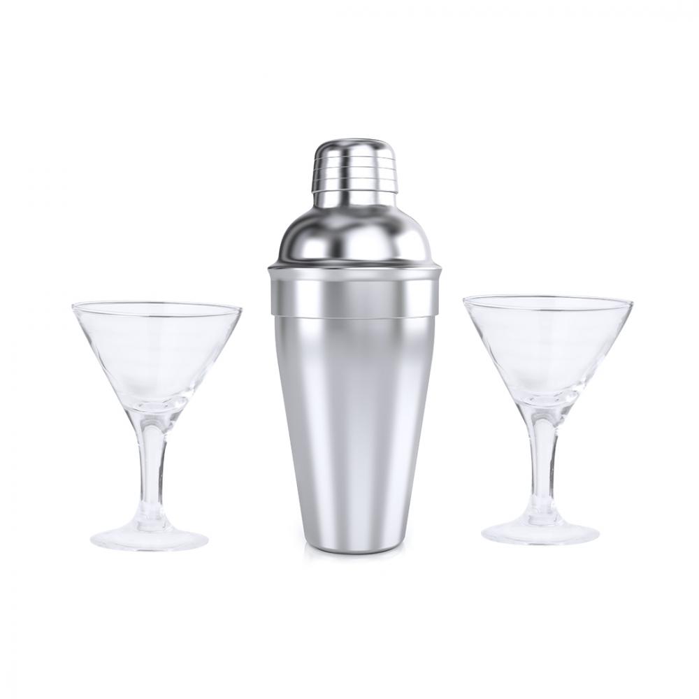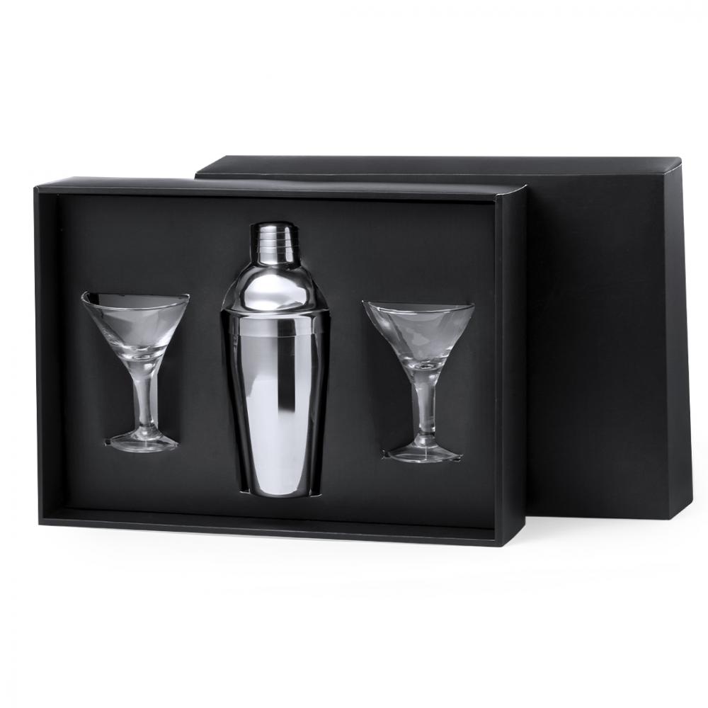 Элегантный набор для коктейлей. Включает в себя нержавеющий стальной коктейльный шейкер объемом 550 мл для приготовления лучших коктейльных смесей. Кроме того, в наборе есть 2 стеклянные чашки по 150 мл каждая с элегантным треугольным дизайном для изысканной подачи. Представлен в черной коробке.