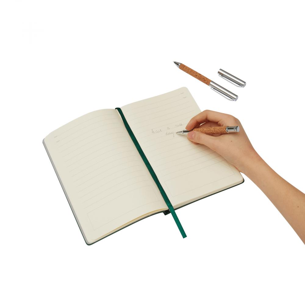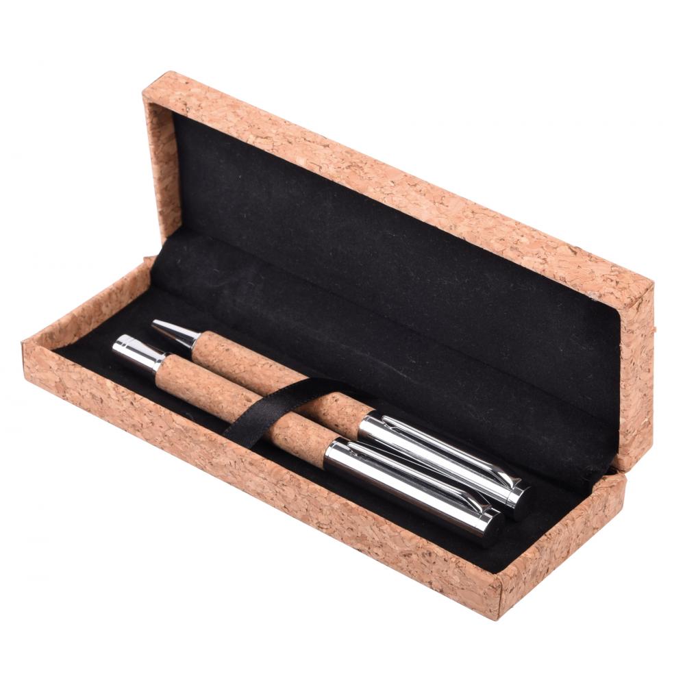 Набор для письма CORK SIGNATURE: состоит из металлической шариковой ручки с поворотным механизмом (синие чернила) и металлической ручки–роллера (черные чернила) - ручка изготовлена из пробки, поставляется в стильной подарочной коробке из пробки