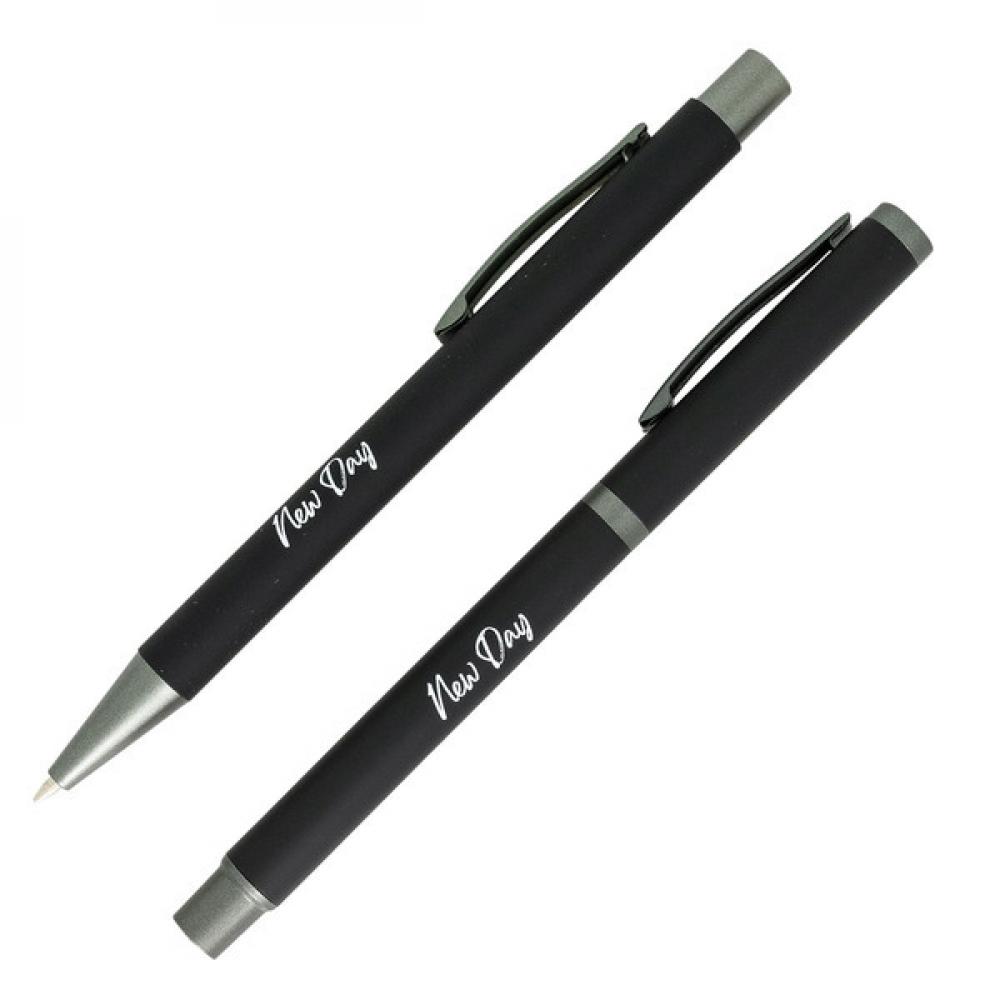 Набор для письма, состоящий из алюминиевой ручки и роллера с резиновым покрытием. Синий стержень. Набор упакован в крафтовый пенал.