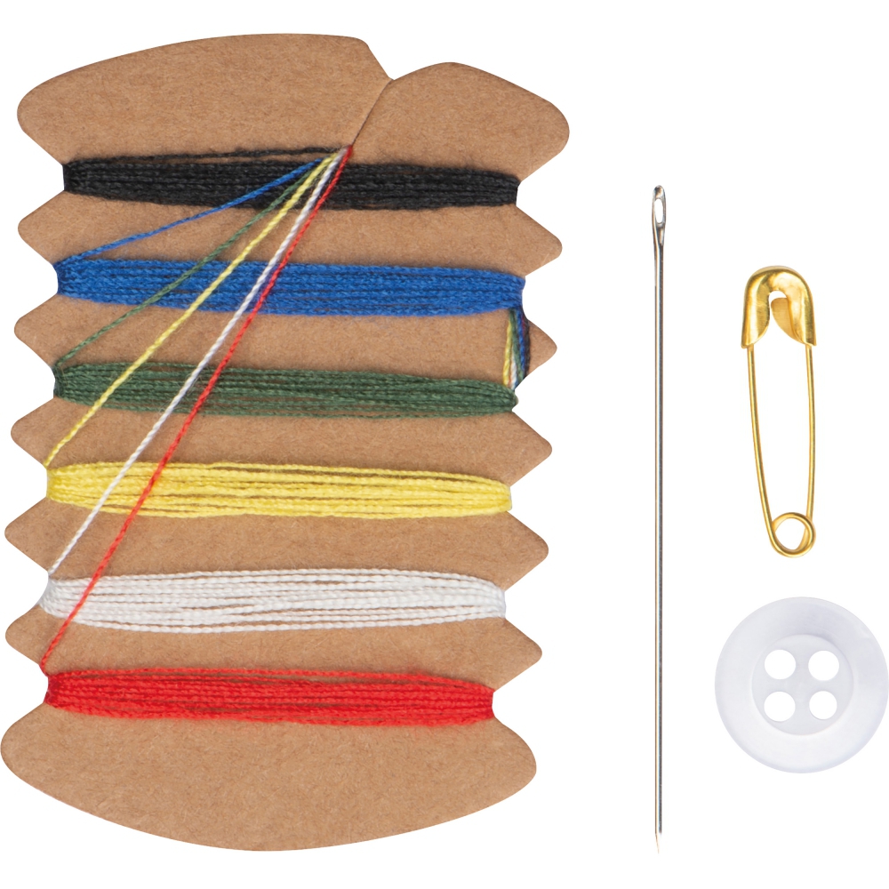 Набор дорожных швейных ниток. В картонной коробке вы найдете все необходимые принадлежности для быстрой починки: 6 ниток основных цветов, иглу и пуговицу.