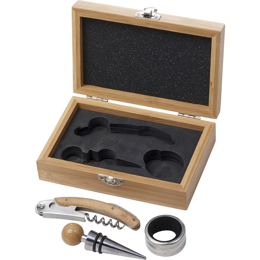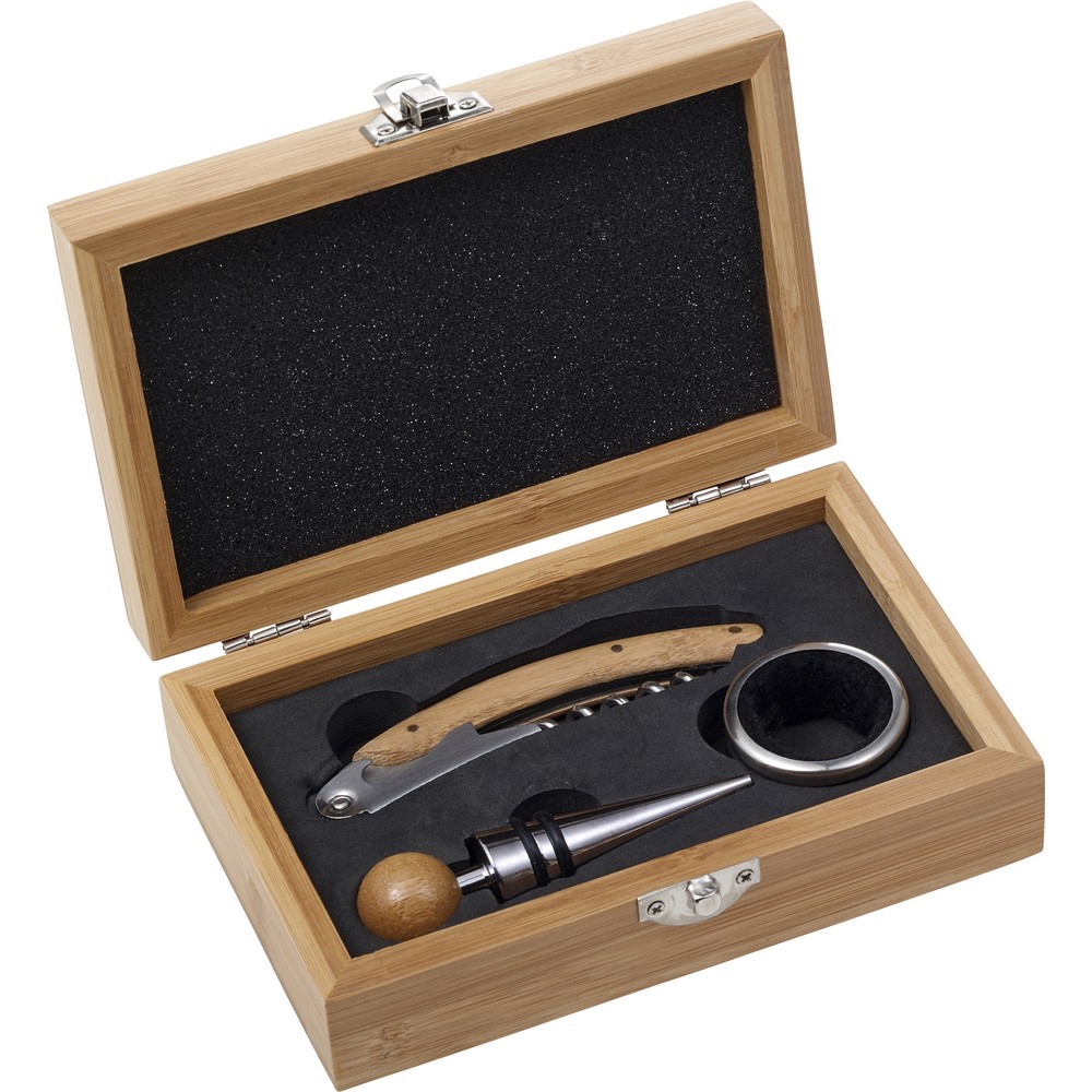 Винный набор из 3 шт. В бамбуковой коробке, аксессуары для вина: штопор из нержавеющей стали, винное кольцо и пробка для бутылок, с бамбуковыми деталями