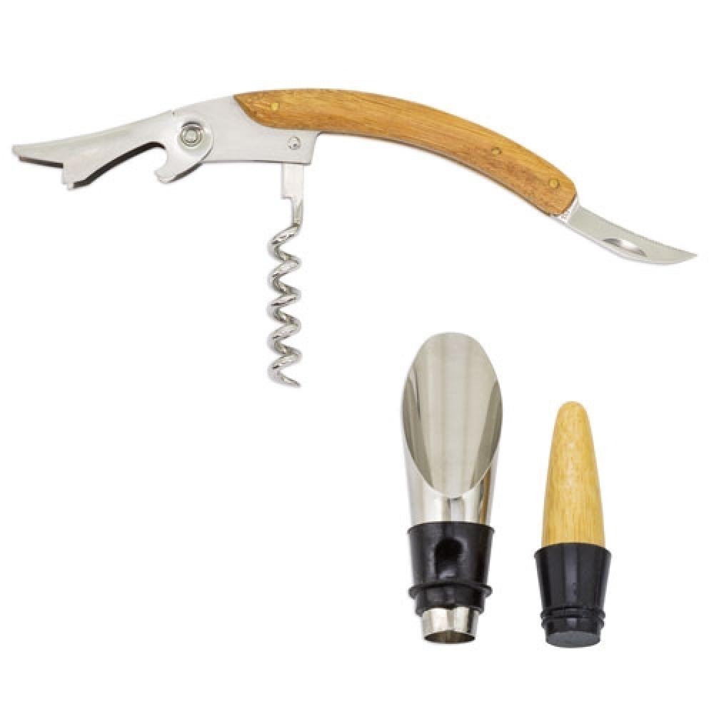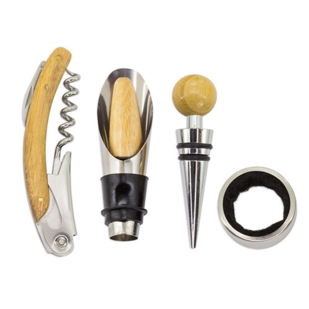 Подарочный набор с открывалкой для бутылок, кольцом для сбора капель, вакуумной пробкой и дозатором. Бутылка в комплект не входит.