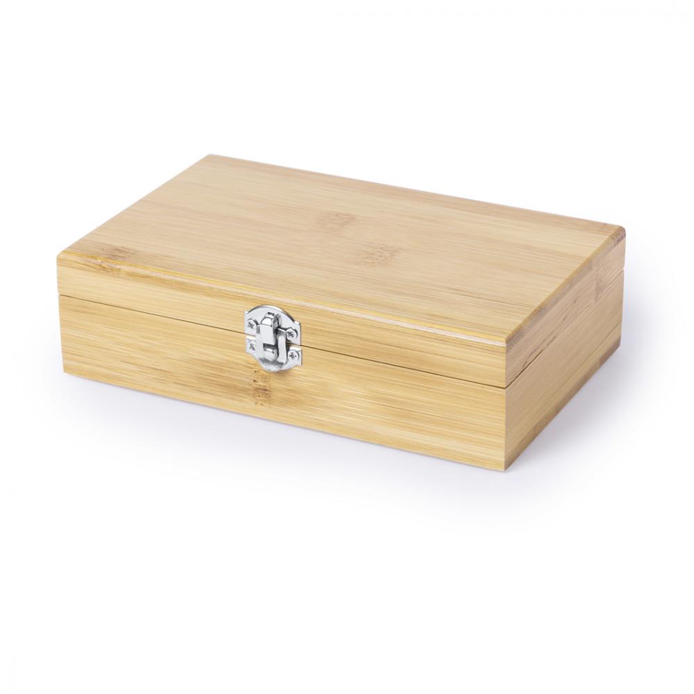 Особенности Винный сервиз из бамбукового дерева. Аксессуары из нержавеющей стали. Включает в себя штопор, дозатор и каплеуловитель. Представлен в индивидуальном футляре из бамбукового дерева с высечкой внутри. 3 Аксессуары