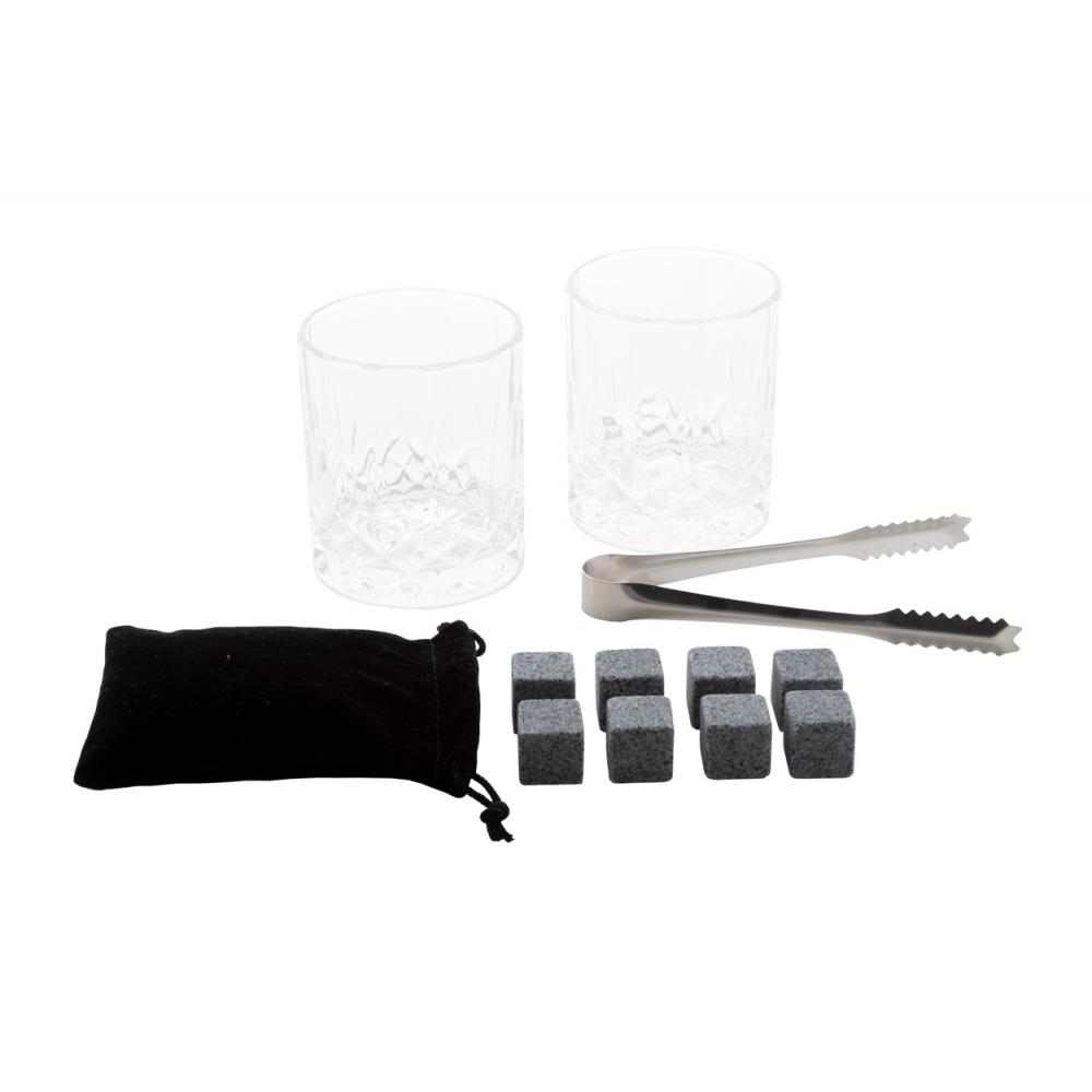 Роскошный набор для виски в бамбуковой подарочной коробке. В комплект входят 2 стакана для виски (250 мл), 8 многоразовых кубиков каменного льда с сумкой для хранения и щипцы из нержавеющей стали.