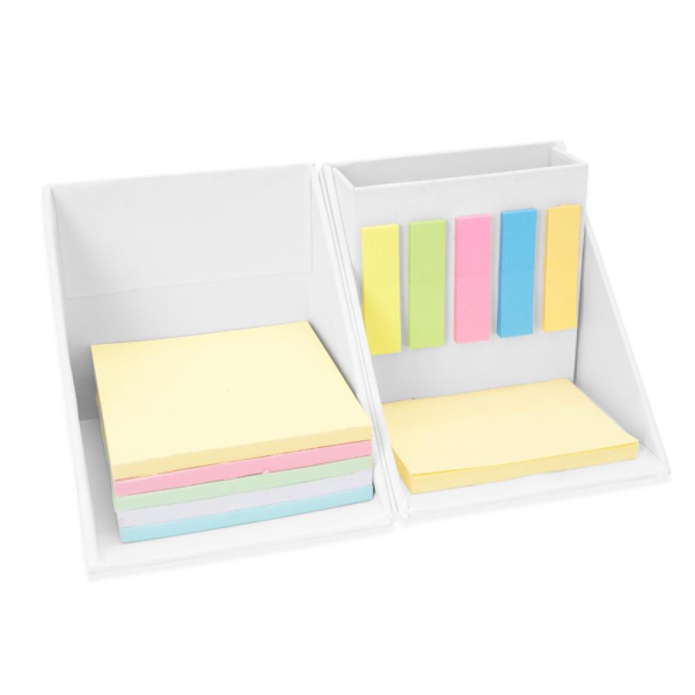 Картонный набор для стола в форме куба, состоящий из подставки для карандашей, блокнота (250 листов) и 180 самоклеящихся заметок разных цветов.