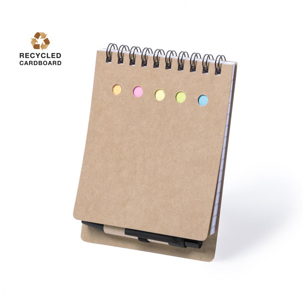 Блокнот с липким кольцом и шариковой ручкой из переработанного картона в комплекте. С мягкими на ощупь обложками из прочного переработанного картона с высечкой. С книгой на 50 листов в одну полоску, 15 большими стикерами и 75 мини-стикерами. Шариковая ручка с синими чернилами. 50 Листов. 15 Стикеров размером 4,4 х 7,5 см. 75 Мини-стикеров размером 1,4 х 4,4 см. Ручка Из Переработанного Картона Входит в Комплект Поставки Переработанный Картон