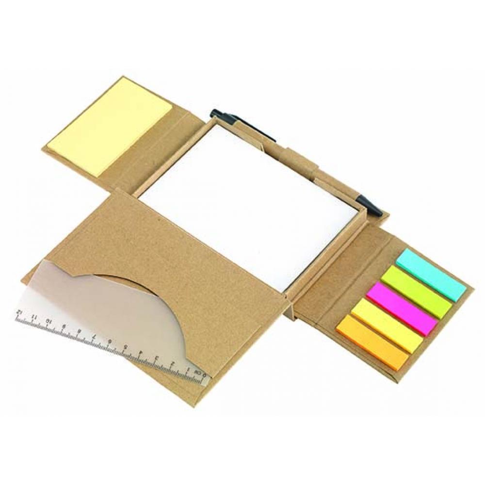 Коробка для заметок POP UP для раскладывания: включает шариковую ручку из прочной бумаги (черные чернила), линейку (12 см), 100 белых листов, разноцветные маркеры страниц - изготовлены из перерабатываемых материалов.