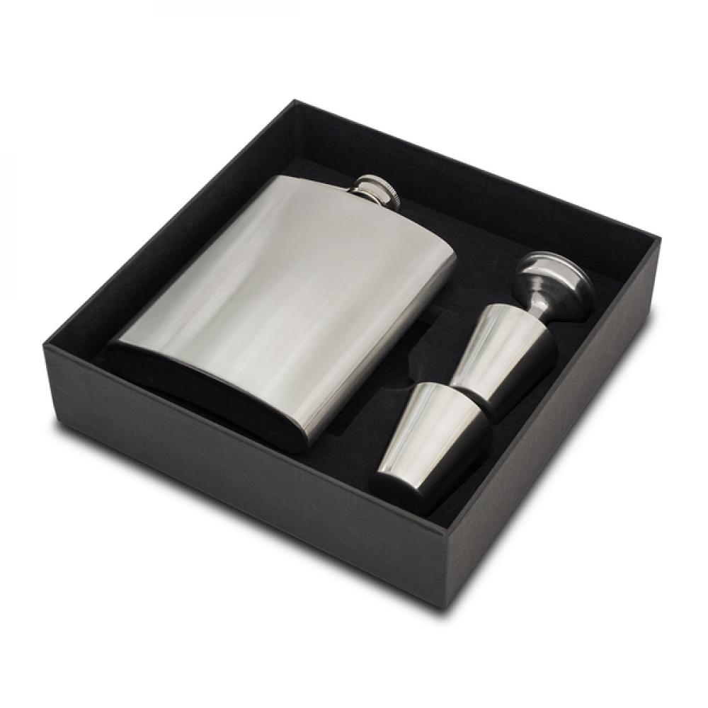 Колба из нержавеющей стали с двумя чашками и набором воронки. Емкость 230 мл. В черном ящике.