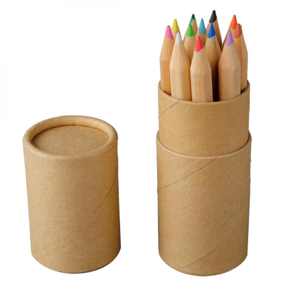 Набор деревянных карандашей 12 цветов. Длина карандаша 8,5 сантиметров. Упакован в картонную тубу. Продукт изготовлен с заботой об окружающей среде.