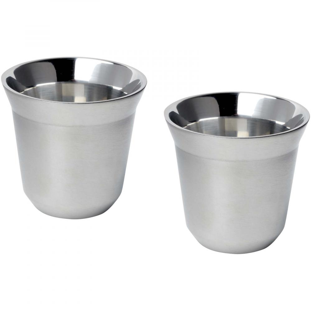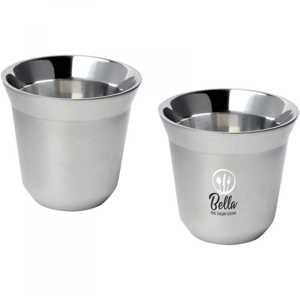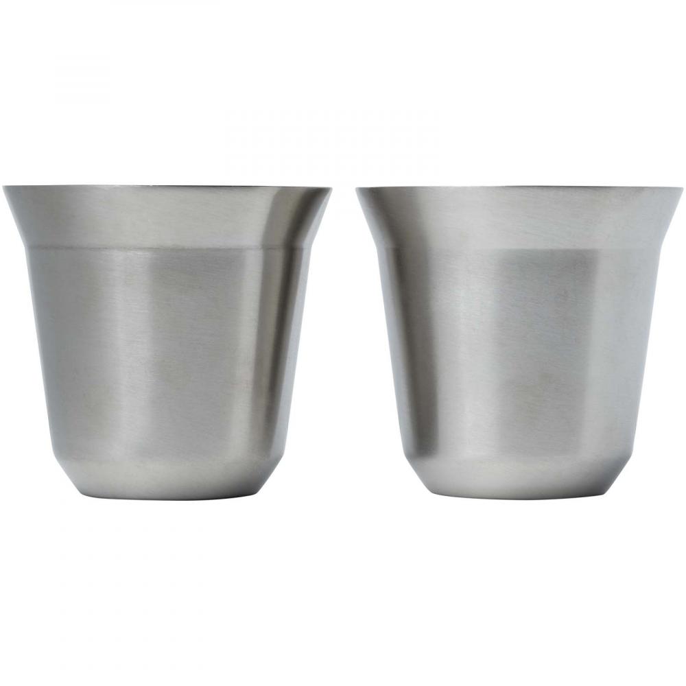 Набор из 2-х двойных стенок сертифицированных RCS чашек для эспрессо из нержавеющей стали. Объем 80 мл. Поставляется в подарочной коробке из переработанного картона.