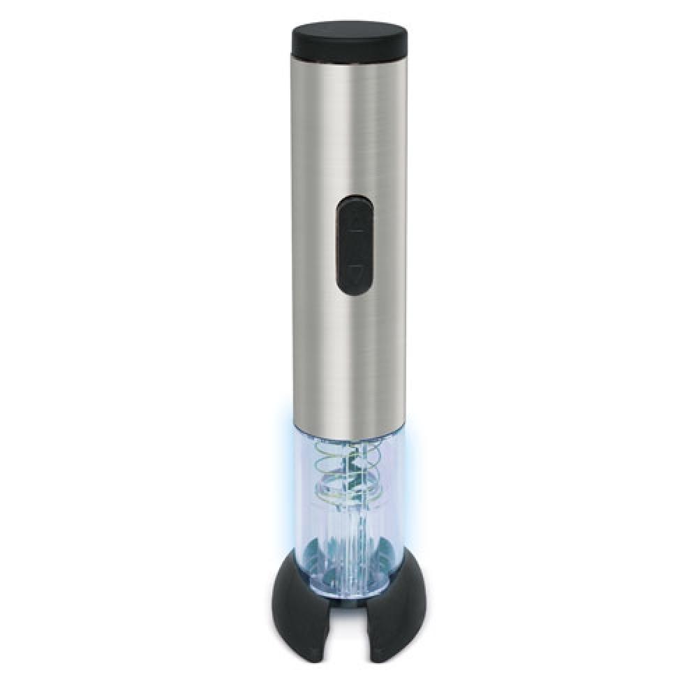 С современным и стильным дизайном из нержавеющей стали, этот удобный электрический штопор поможет вам быстро открыть бутылку вина, нажав всего одну кнопку. В комплект входит подставка для снятия фольги.