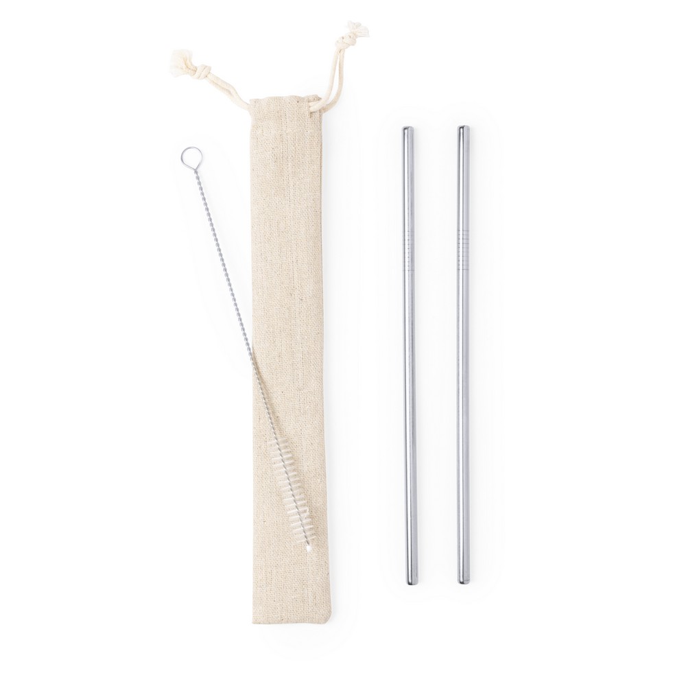 Набор из 2 трубочек для питья из нержавеющей стали с щеткой для очистки и хлопчатобумажным мешочком, многоразового использования