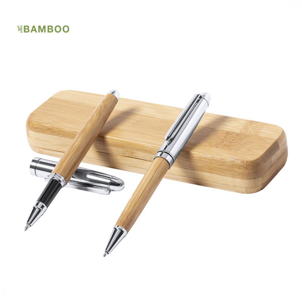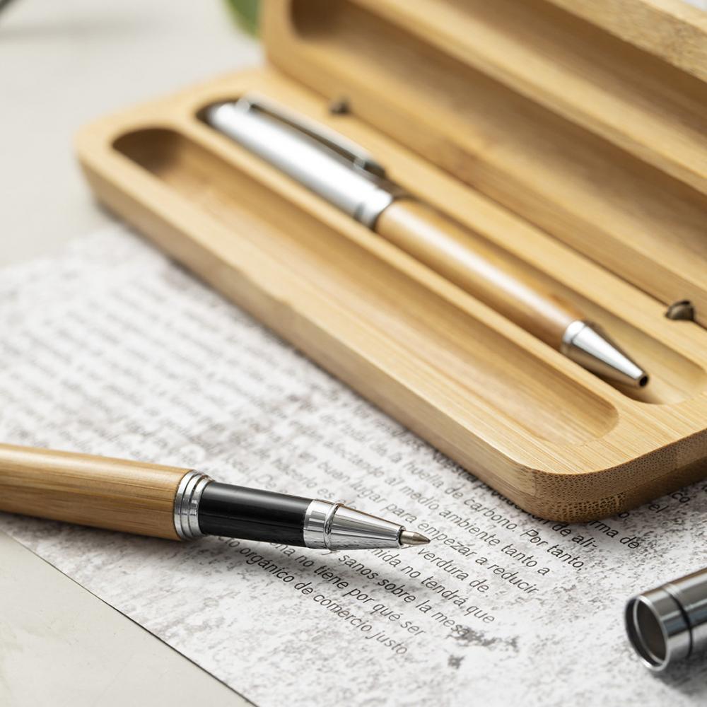 Особенности Набор шариковых ручек и роликов Nature line. Изготовлен из комбинации бамбука и металла, что способствует использованию натурального сырья и сокращению выбросов загрязняющих веществ. Шариковая ручка с поворотным механизмом синими чернилами. Валик с колпачком, гелевыми чернилами синего цвета и большой заправкой. Представлен в индивидуальном бамбуковом футляре. Ручка и валик. Гигантская заправка Бамбук/ Металл