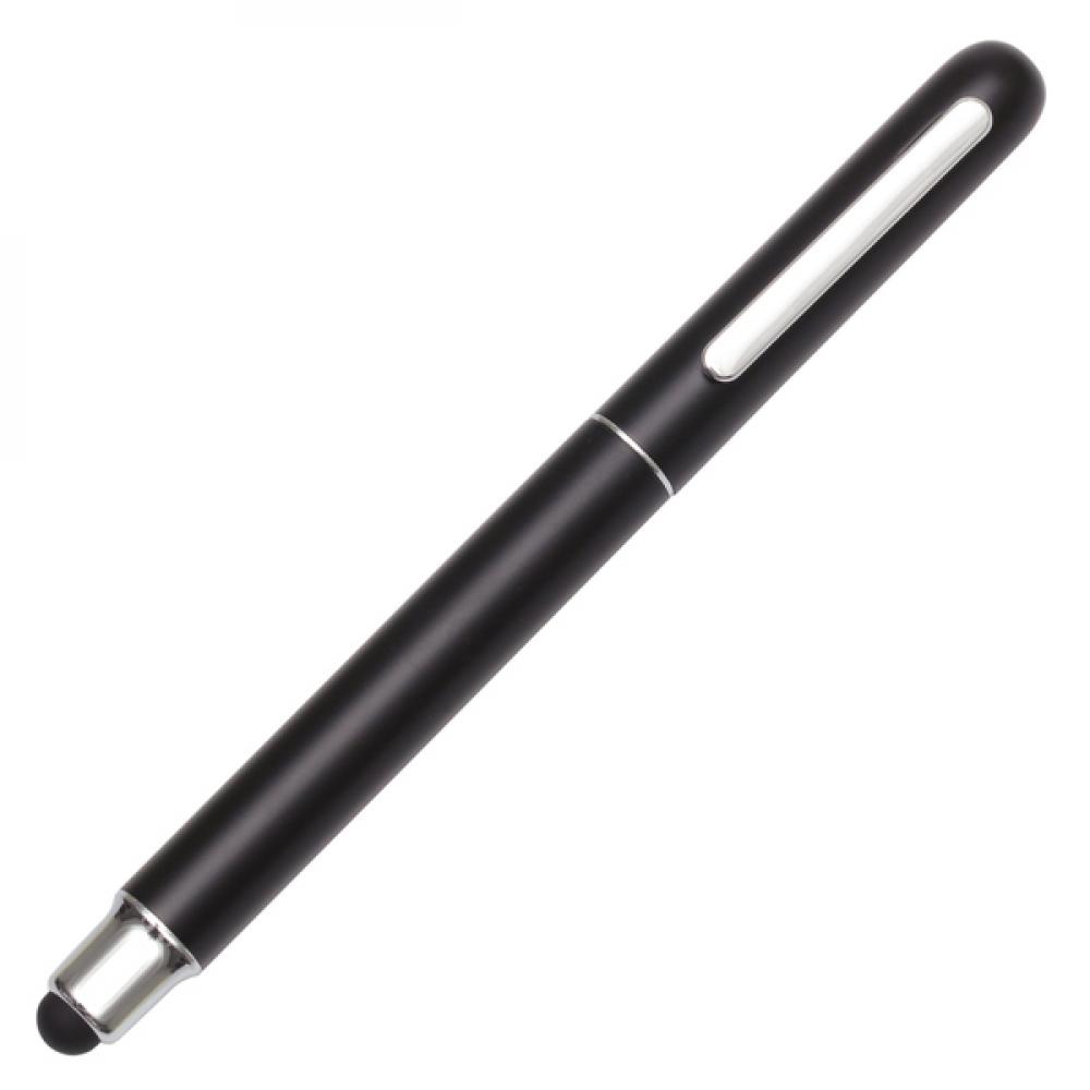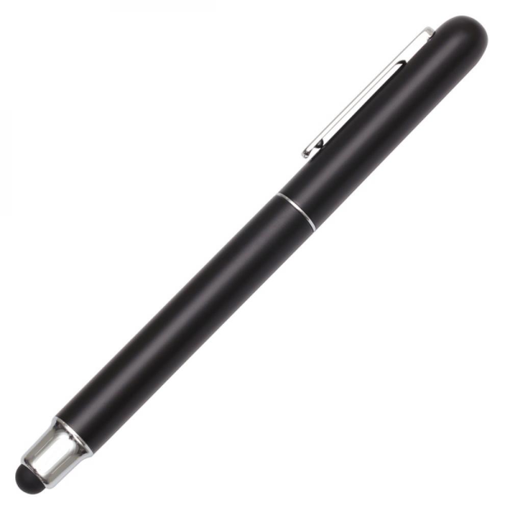 Набор из алюминиевой ручки и роликовой ручки. Роликовая ручка поставляется с черным резиновым сенсорным стилусом. Окрашенный ствол и хромированные накладки. Сменный стержень для шариковой ручки с синими чернилами 1,0 мм и стержень с роликом 0,7 мм. Упакован в картонную коробку черного цвета. Возможна печать XL.