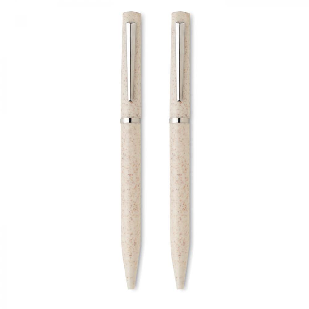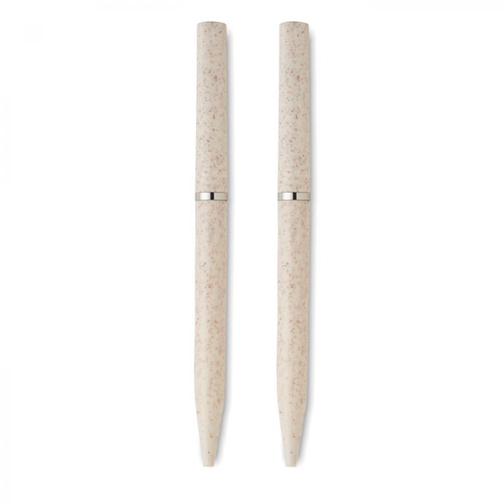 Письменный набор из пшеничной соломы и пластика: 1 шариковая ручка с синими чернилами и 1 вечный карандаш. Поставляется в коробке из переработанной бумаги. FSC®-certified | FSC MIX, P5.1, FSC-C213206