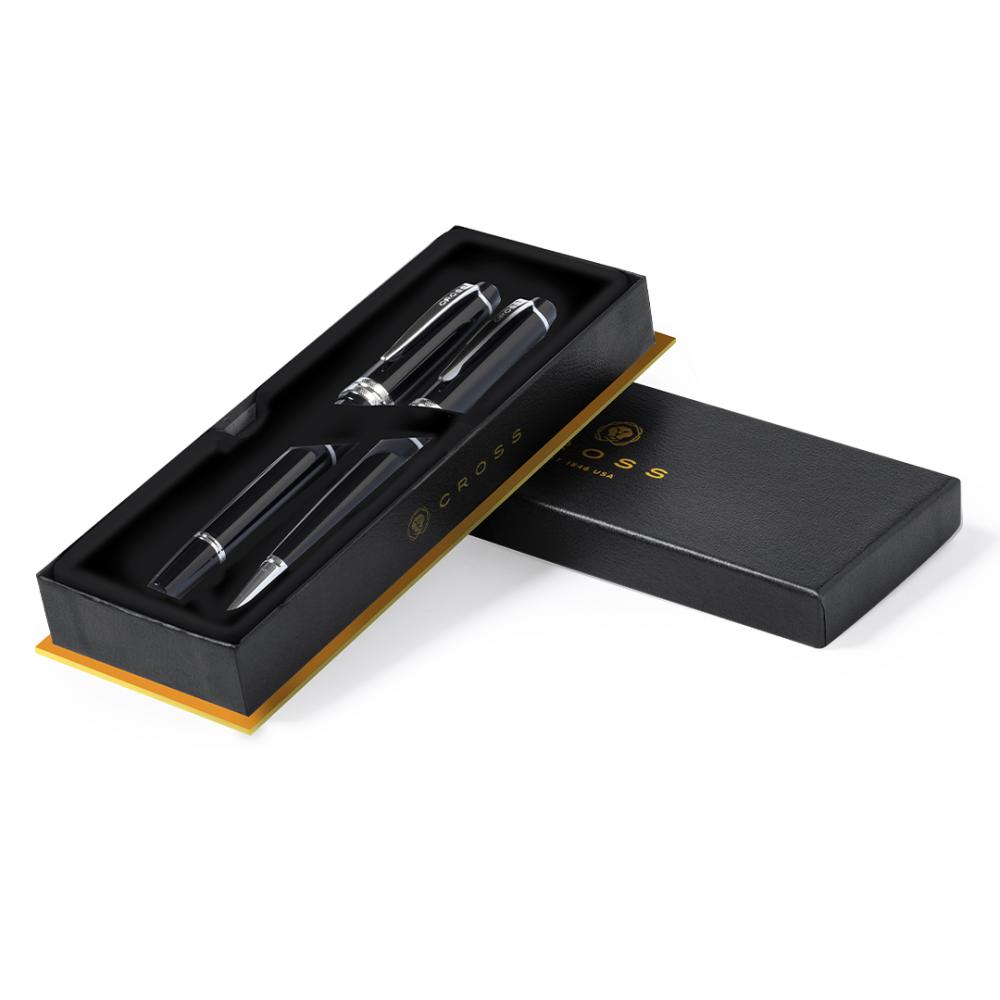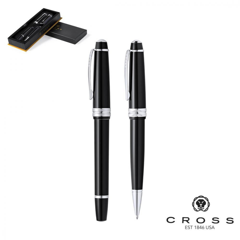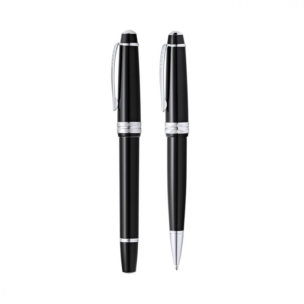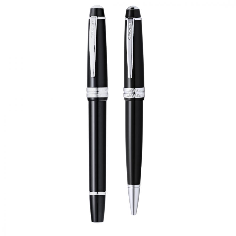 Набор из шариковой ручки и роллера Cross Bailey Light, сочетающий глянцевую смолу с полированным хромом, металлической отделкой. Картридж Jumbo и черные чернила. Поставляется в элегантном индивидуальном черном футляре с логотипом бренда и мягкой замшевой подкладкой.