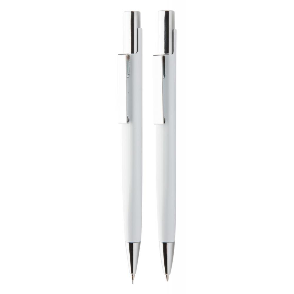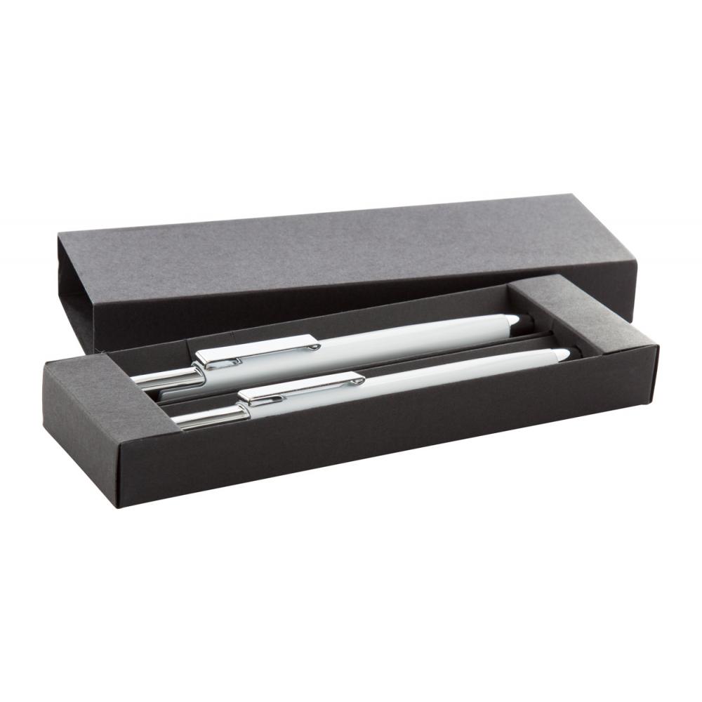 Набор алюминиевых ручек с шариковой ручкой и механическим карандашом в черной подарочной коробке. С синим стержнем и проводами 0,7 мм.