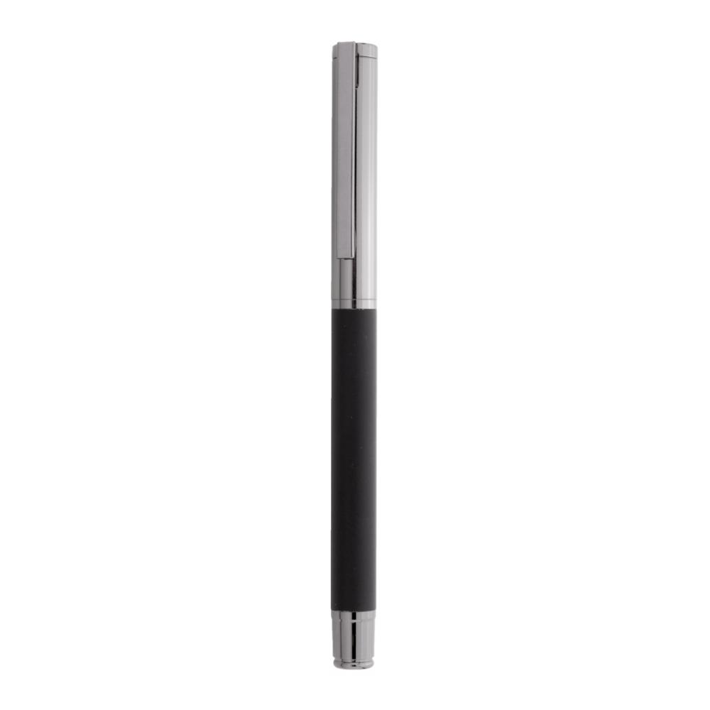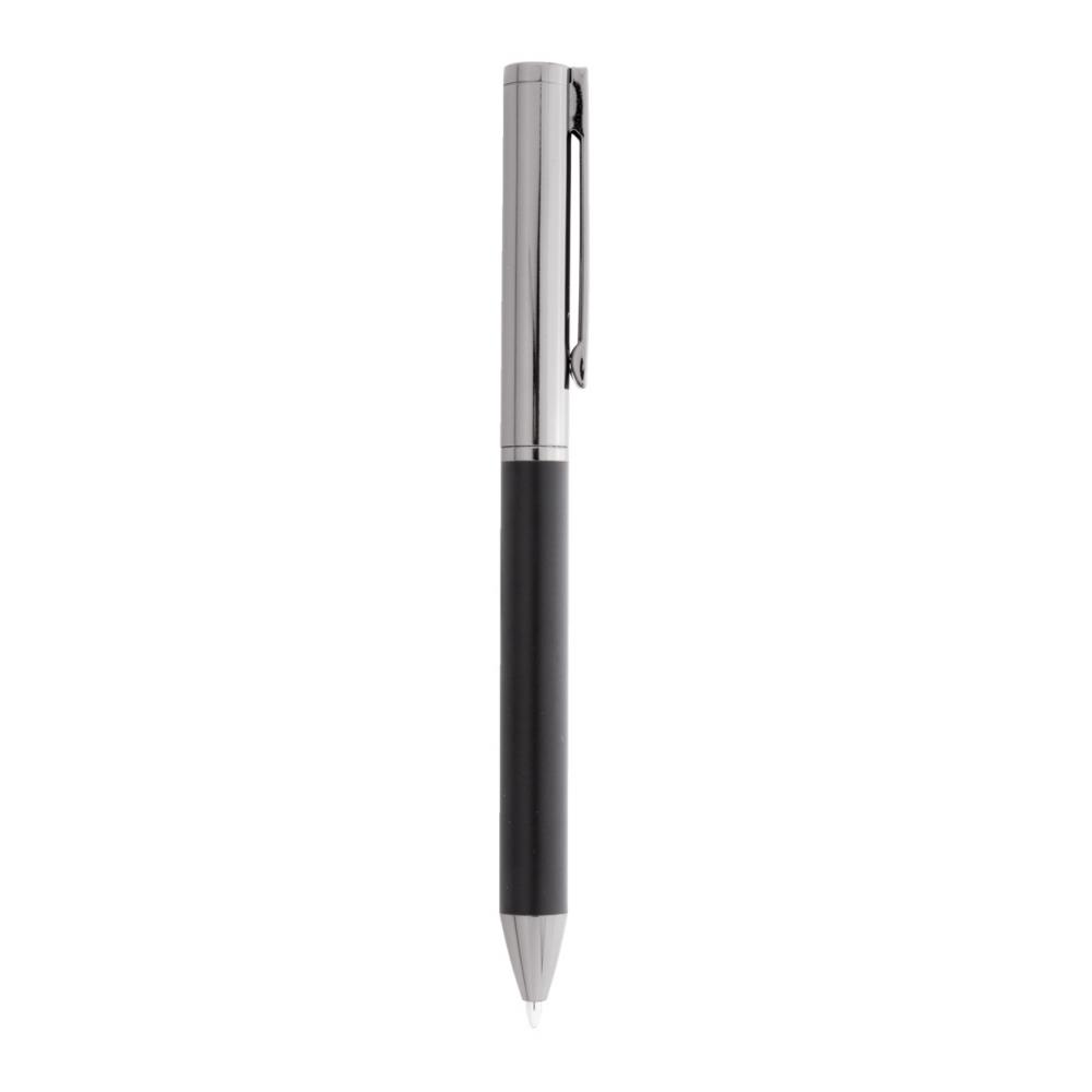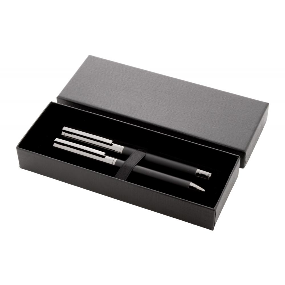 Элегантный набор металлических ручек с шариковой ручкой и роликовой ручкой в подарочной коробке из черной бумаги. С голубой заправкой.
