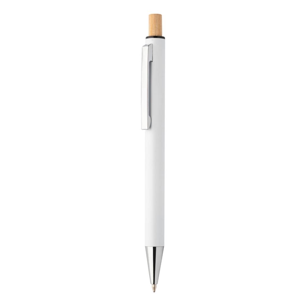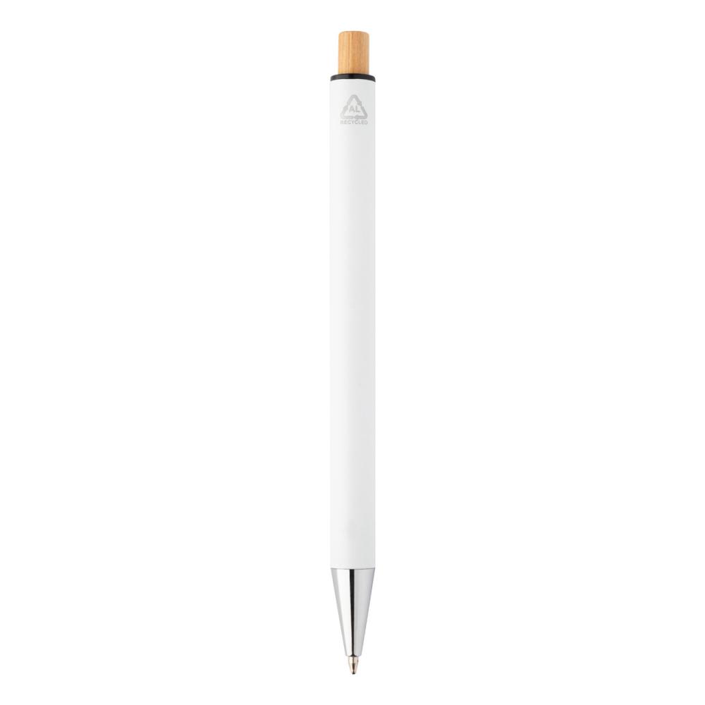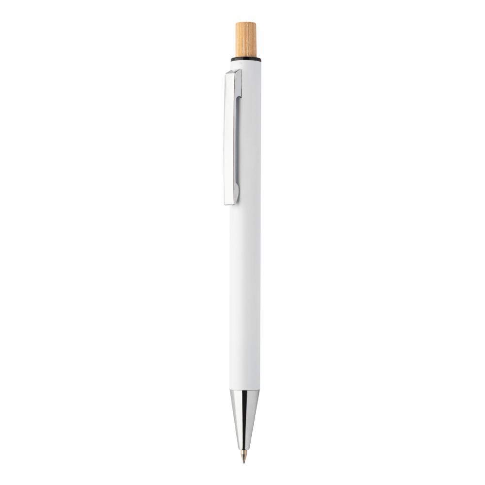Набор переработанных алюминиевых ручек с шариковой ручкой и механическим карандашом с кнопками из бамбука. С синим стержнем и грифелями 0,7 мм. В коробке из крафт-бумаги.