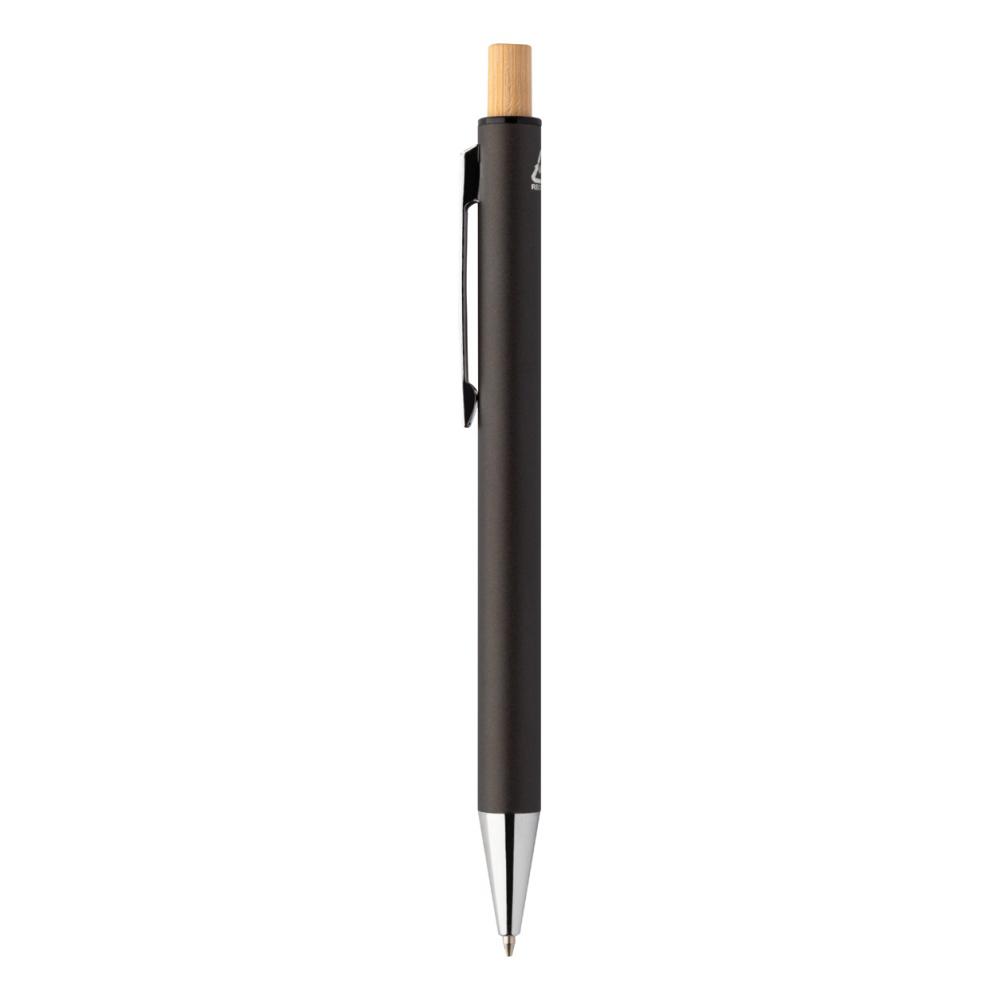 Набор переработанных алюминиевых ручек с шариковой ручкой и механическим карандашом с кнопками из бамбука. С синим стержнем и грифелями 0,7 мм. В коробке из крафт-бумаги.