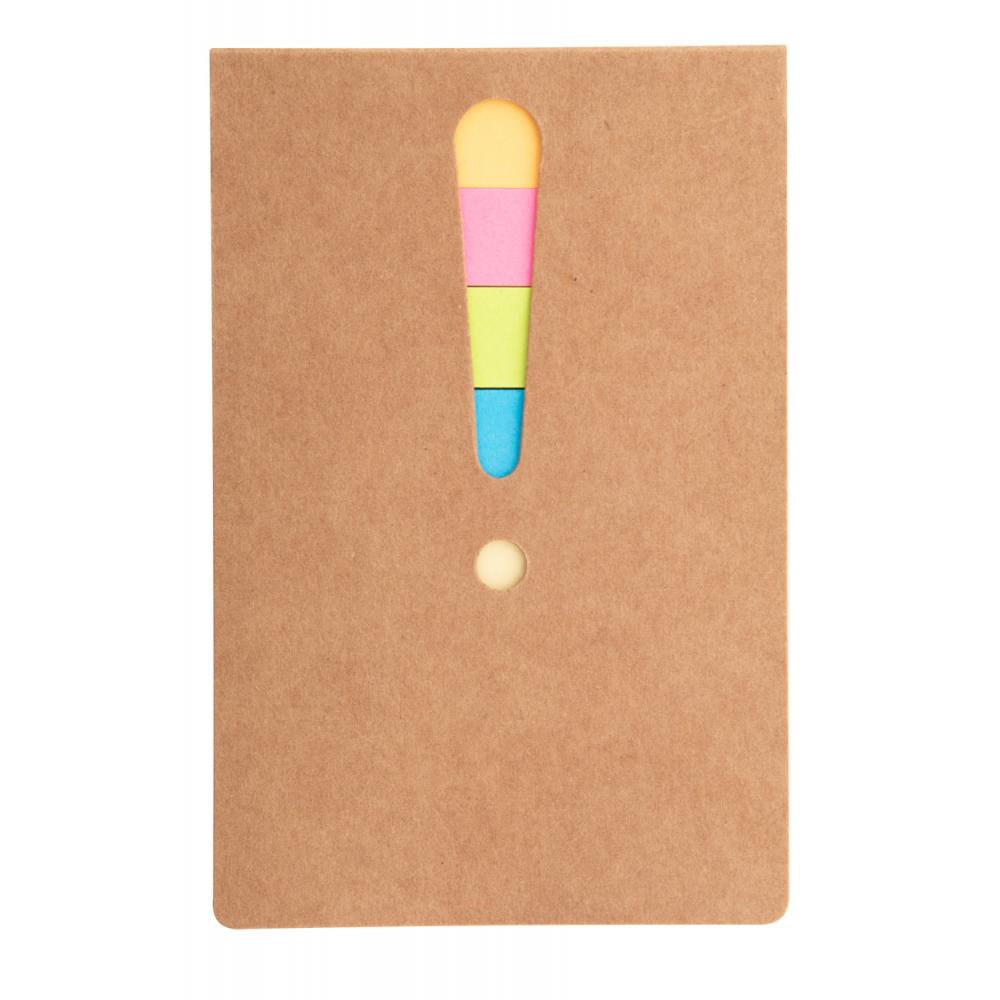 Набор стикеров с 25 большими и 100 маленькими заметками (4 разных цветов). С высеченным восклицательным знаком на крышке.