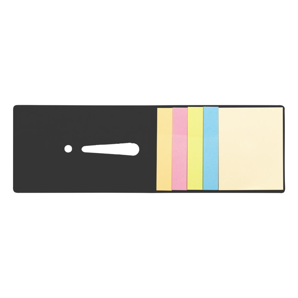 Набор стикеров с 25 большими и 100 маленькими заметками (4 разных цветов). С высеченным восклицательным знаком на крышке.