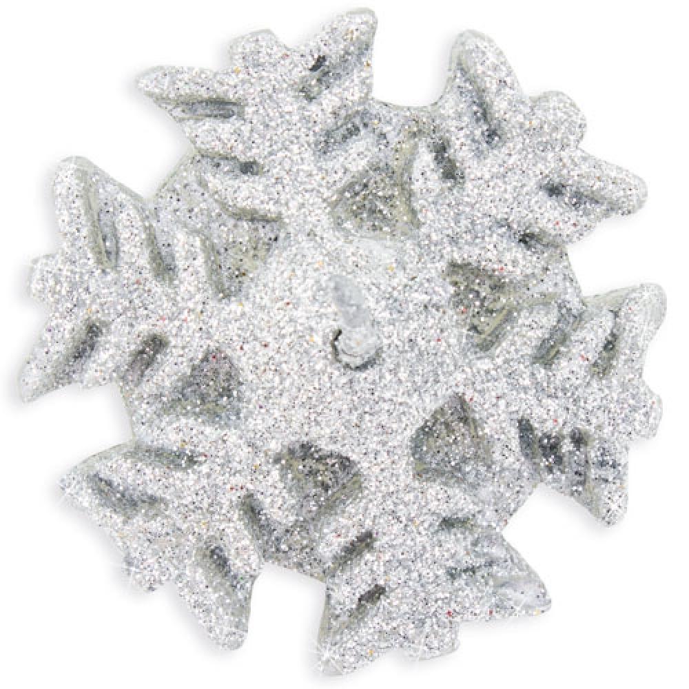 Набор из 3 свечей в форме снежинок, серебристого цвета с блестками, в подарочной упаковке.