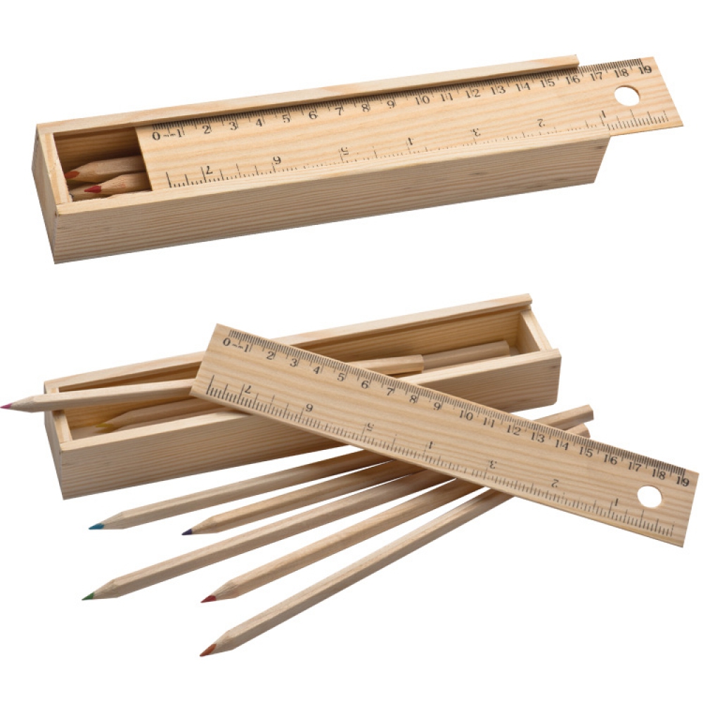 Набор состоящий из 8-ми деревянных цветных карандашей, упакованы в практичной и прочной коробке с крышкой, которую можно использовать как линейку. Печать нанесём на коробке с карандашами.