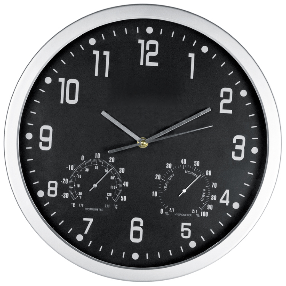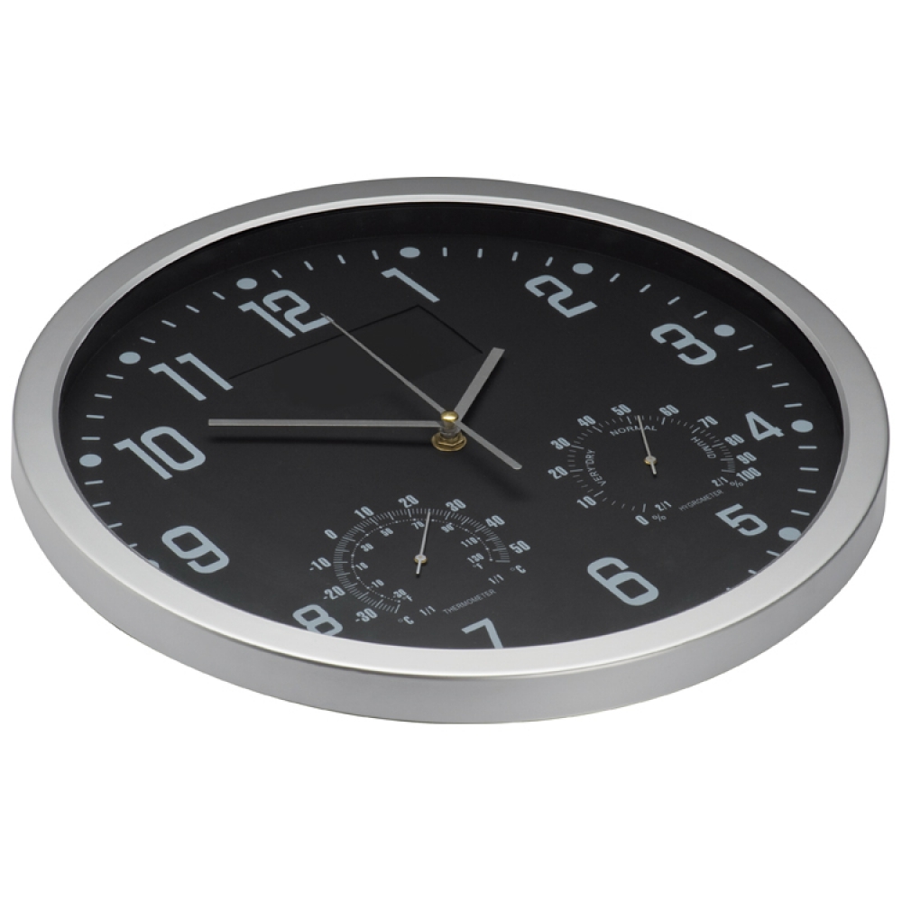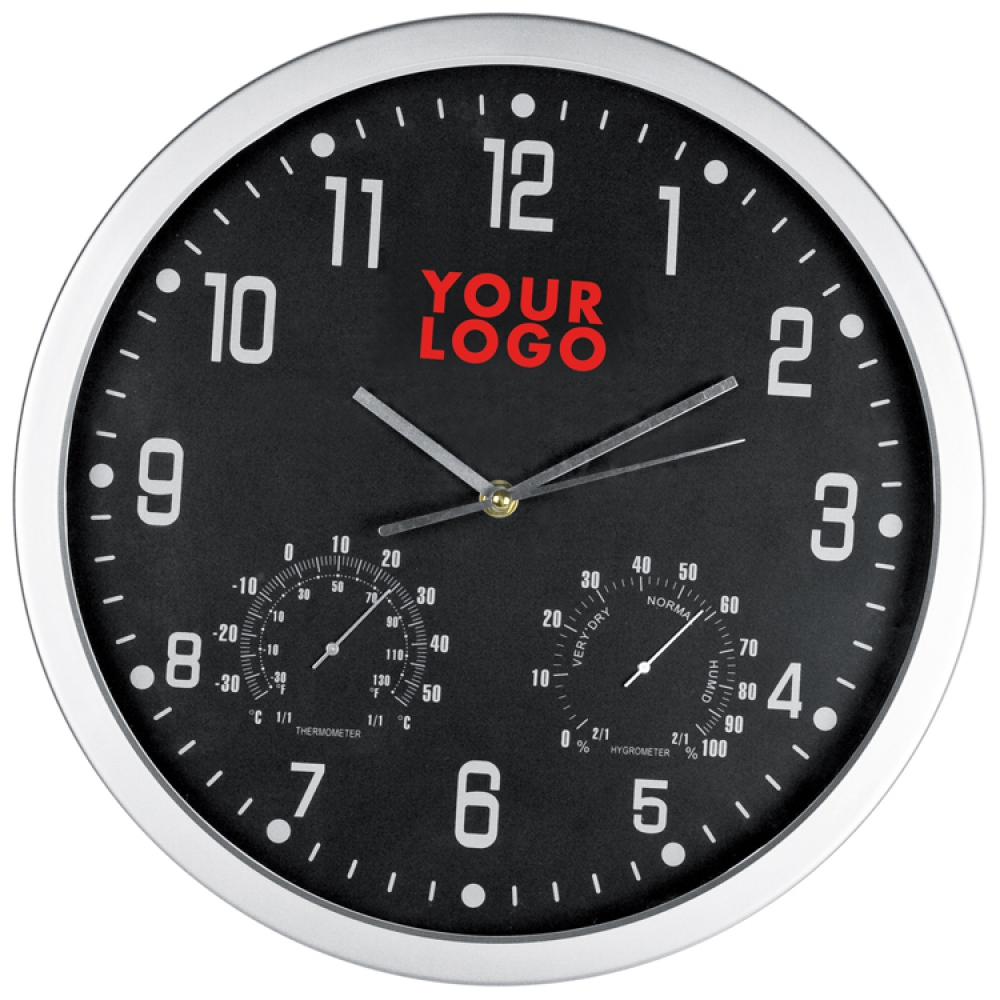 Стильные и элегантные часы CrisMa с термометром и гигрометром. Рекламный логотип нанесём на специально предназначеной для этого панели.