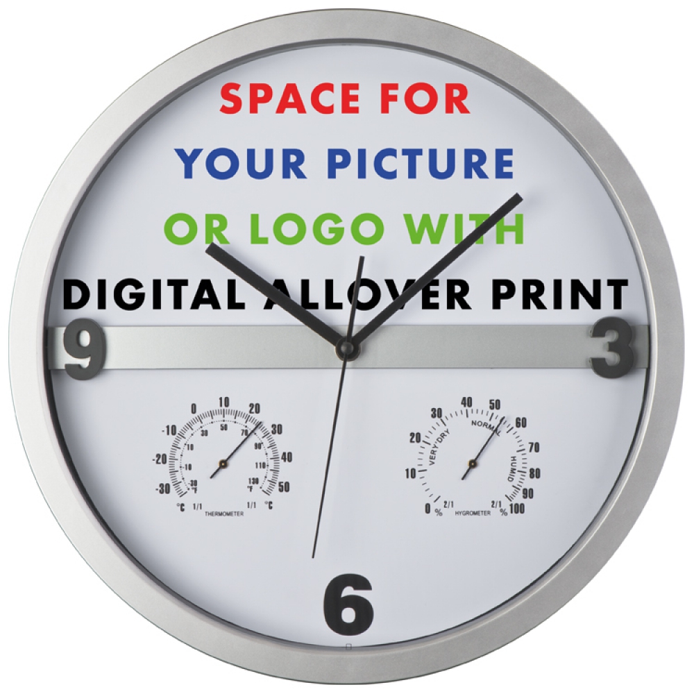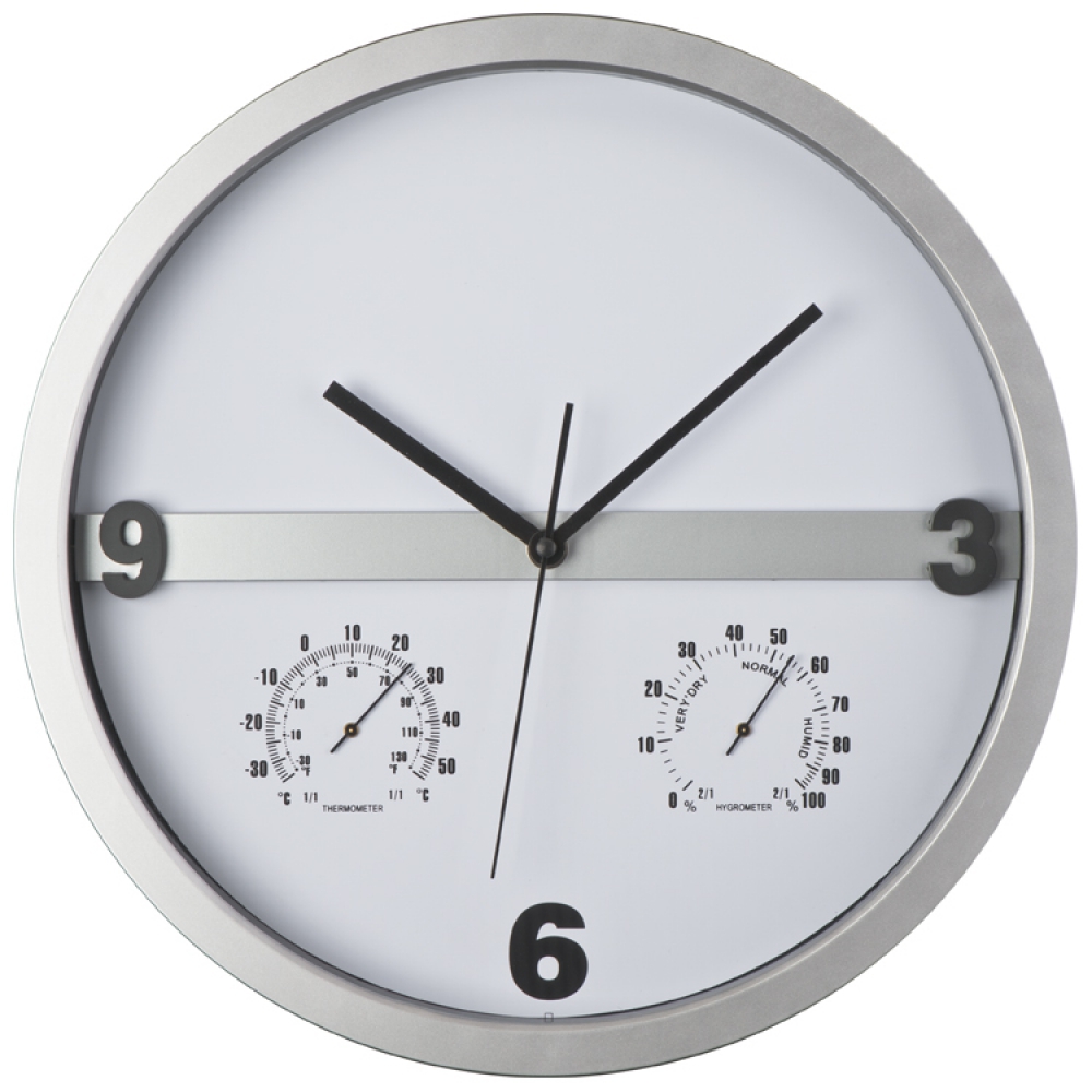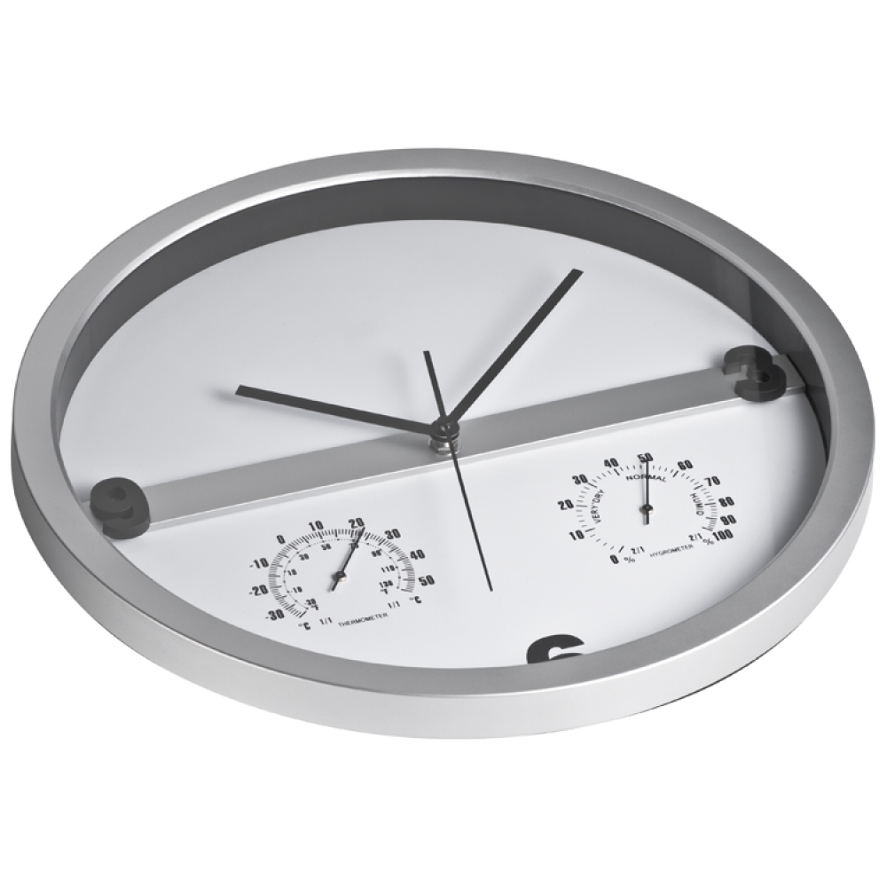 Стильные настенные часы с термометром и гигрометром. Половину циферблата можно легко вынуть и запечатать.