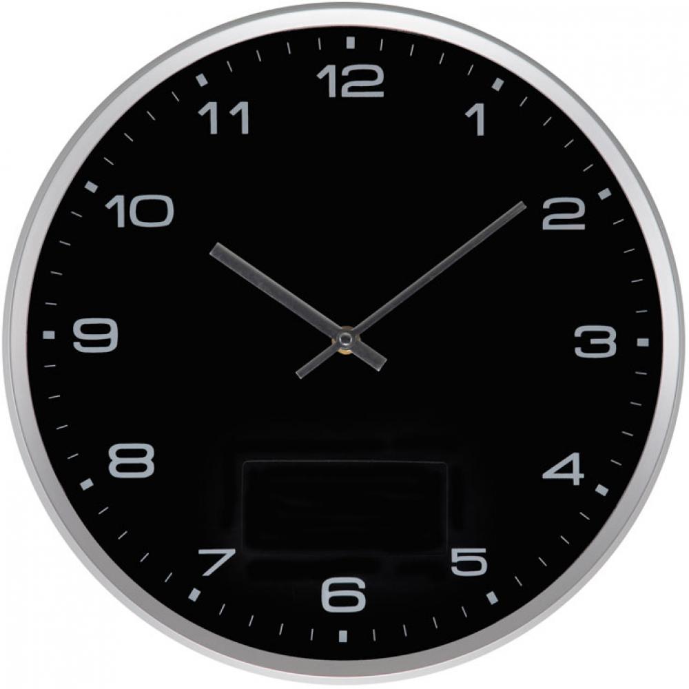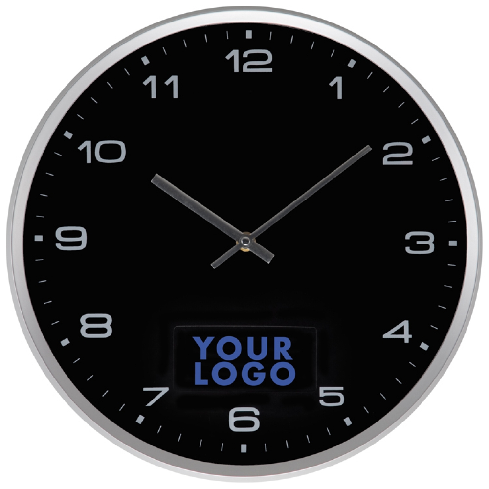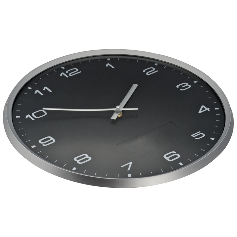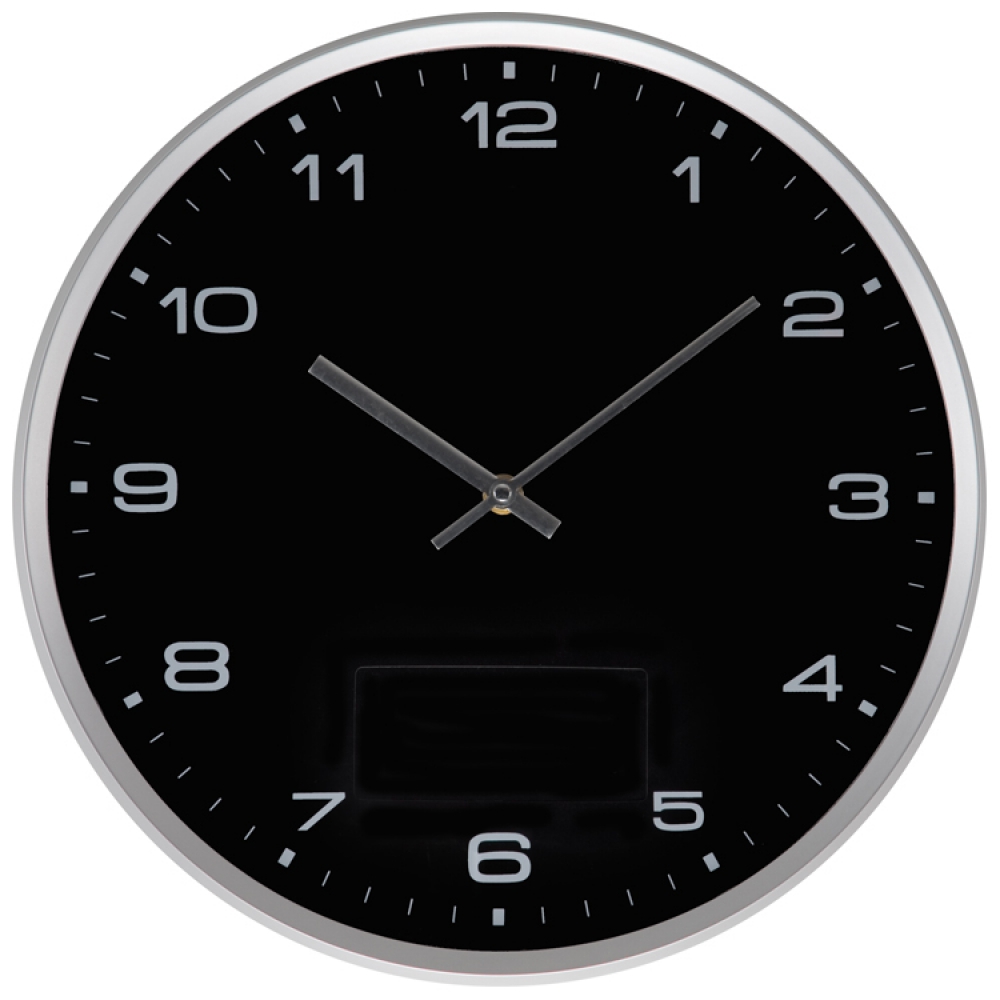Современные пластиковые настенные часы с легко снимаемым элементом для быстрого нанесения логотипа.