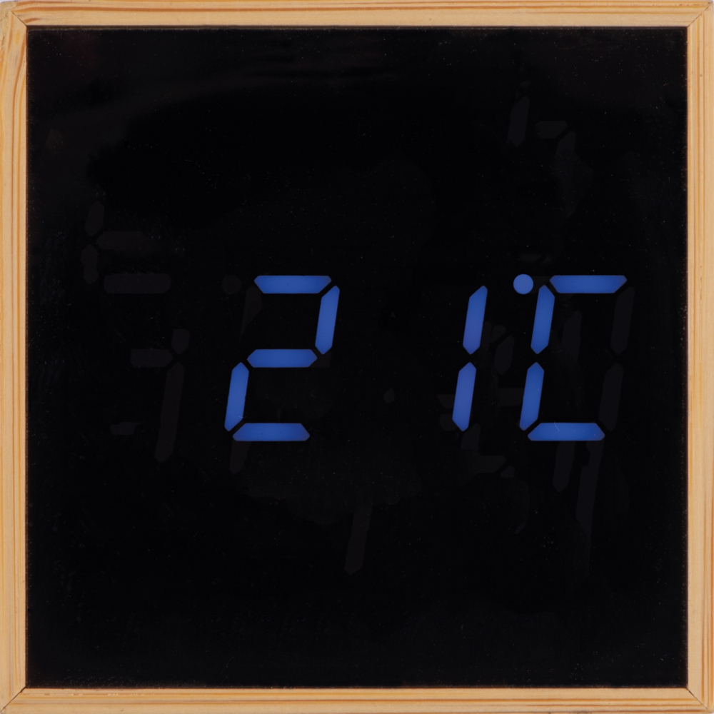 Элегантные настольные часы в деревянном корпусе с черным светодиодным дисплеем. Могут отображаться время, температура и дата.
