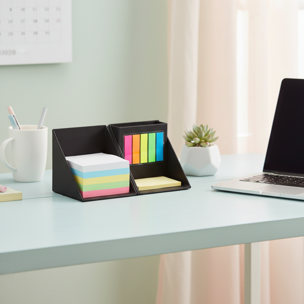 Настольный органайзер Nivora с бумажными стикерами — компактное и стильное решение для хранения канцелярии и быстрых заметок. Помогает держать рабочее место в порядке и вдохновляет на продуктивность.