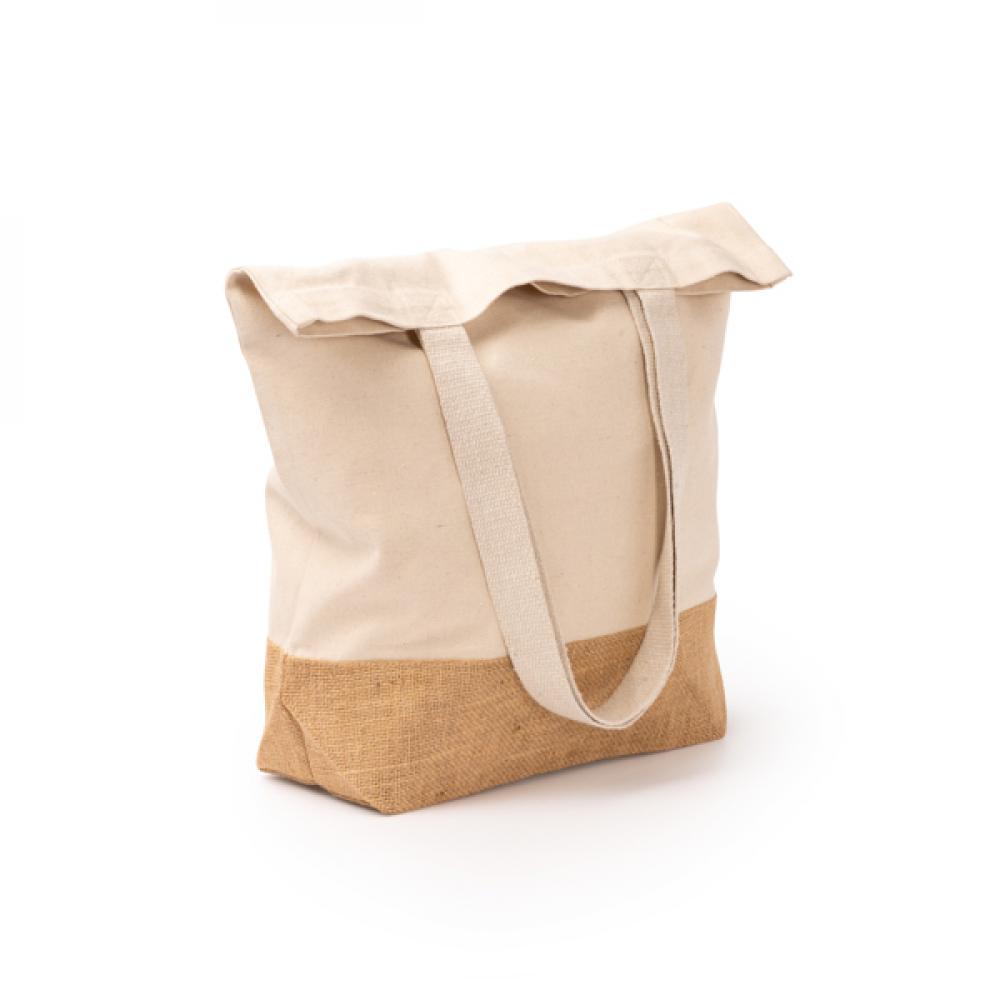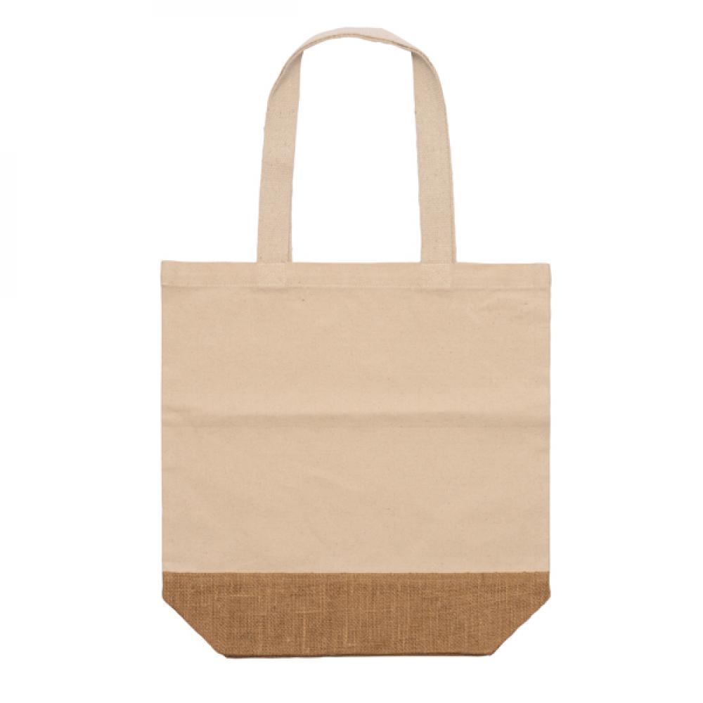 Сумка из переработанного хлопка с плотностью 330 г/м² и натурального джута. Ручки длиной 70 см.